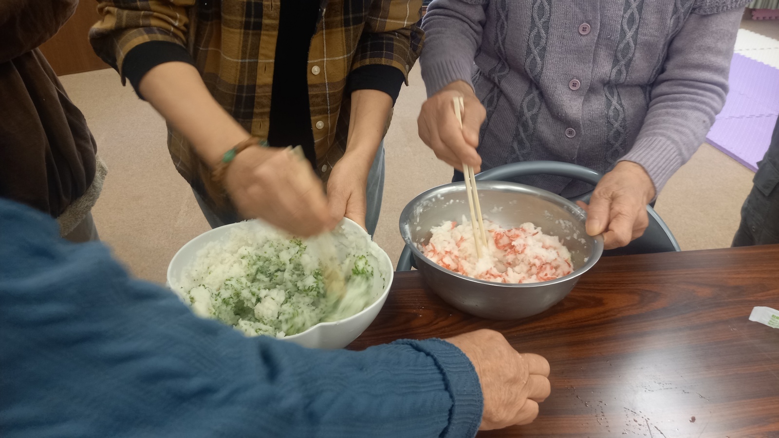 「でこぼこ in 金目(12月)」を開催しました! 12月8日(月)、みんなの集いの場「でこぼこ in 金目」を開催しました。 この日は開催場所の広川自治会館にある大きなクリスマスツリーを組み立てて飾り付けをしました。その後、本日のおやつ「大根餅作り」チームと前々回で実施して好評だった「ミサンガ作り」チームに分かれて活動しました。 一方、遊び回っていた4歳の男の子は、遊びの途中から大根餅の焼ける匂いにわくわくしながら待っていました。 珍しい大根餅! 以外に簡単に出来て、とてもおいしかったです。 次回は令和8年1月19日(月)広川自治会館で、「身体や頭(脳)のリフレッシュしよう!」です。 (Yo.Y.) ※「でこぼこ in 金目」とは 全世代(赤ちゃんからお年寄りまで)のみんなの集いの場です。気軽にご参加ください。 |