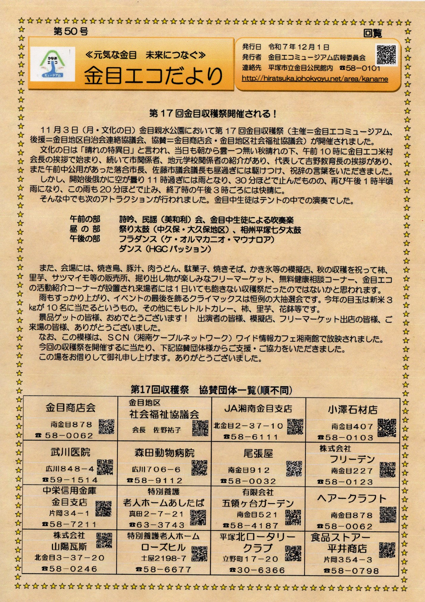 - 2025/12/14 「金目エコだより」第50号を発行しました!