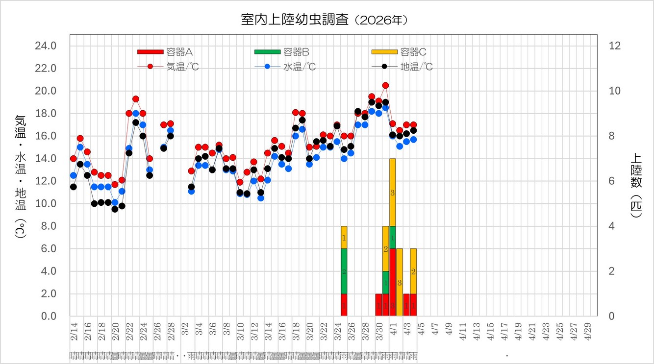 - 2026/03/26 室内飼育のホタル幼虫も上陸し始めました!