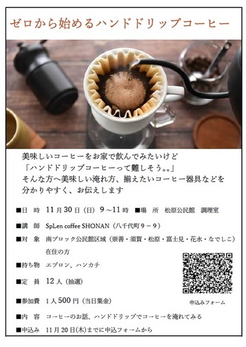 - 2025/11/06 南ブロック共催事業「ゼロから始めるドリップコーヒー」