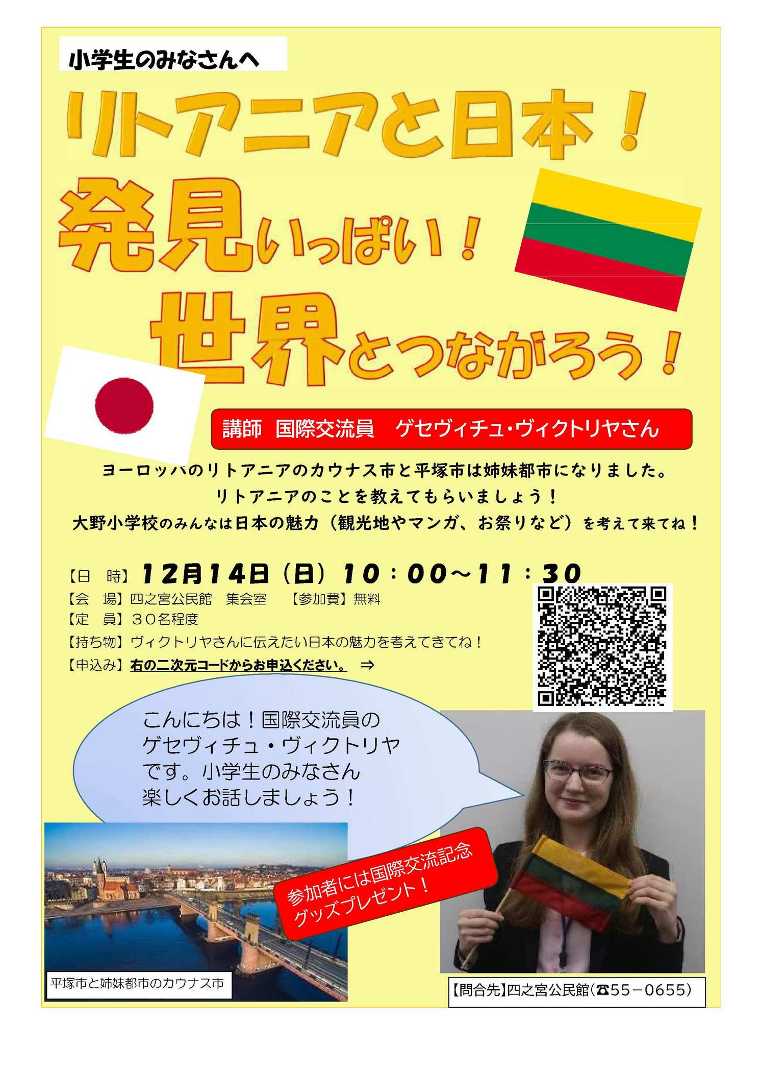 - 2025/11/28 【全ての小学生参加OK!】【国際交流講座】リトアニアと日本!発見いっぱい!世界とつながろう!