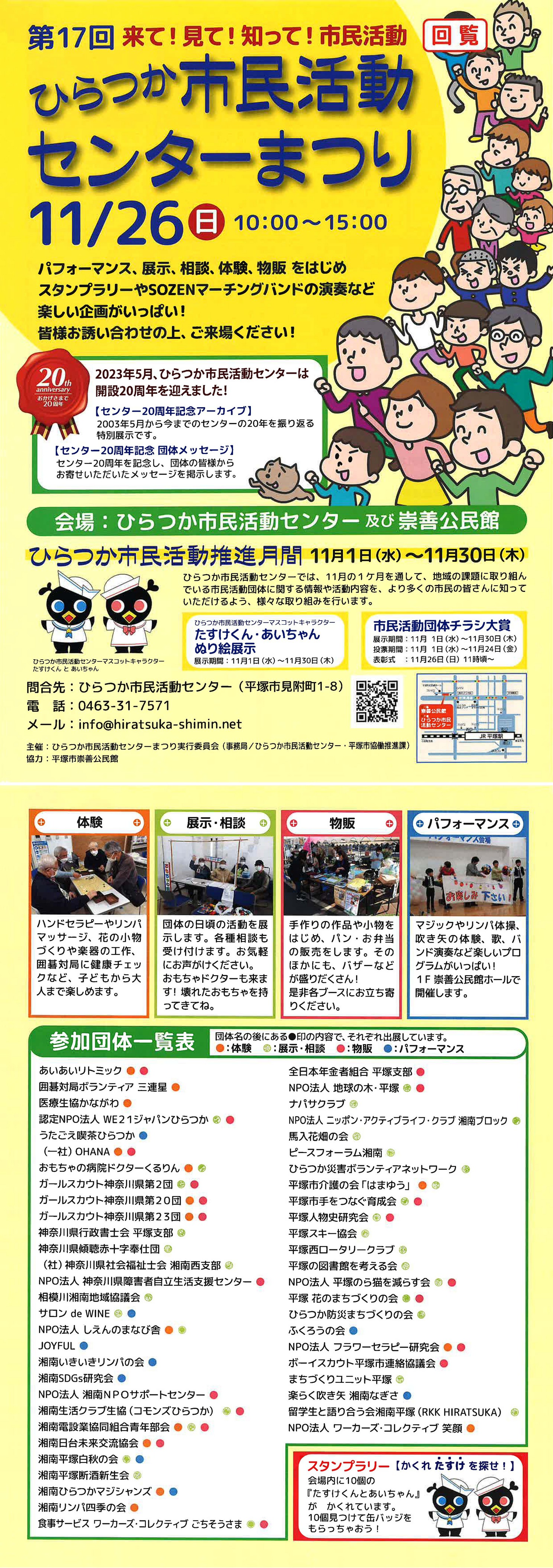 - 2025/11/03 【回覧板】第19回 ひらつか市民活動センターまつり