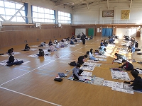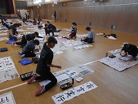 今日、5年生と4年生が体育館で書き初めを行いました。