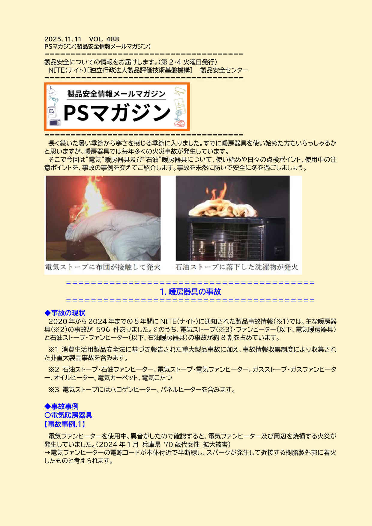 【PSマガジンvol.488】11月11日号「暖房器具の事故」