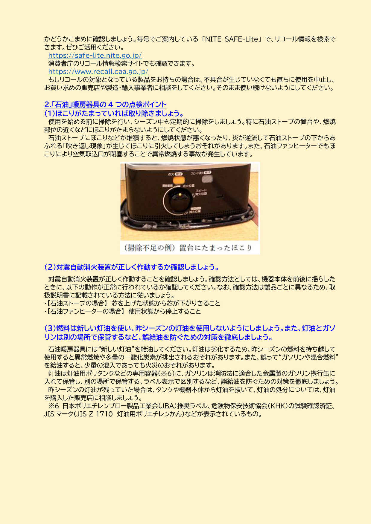 - 2025/11/12 NITE製品安全センターからの情報 「暖房器具の事故」