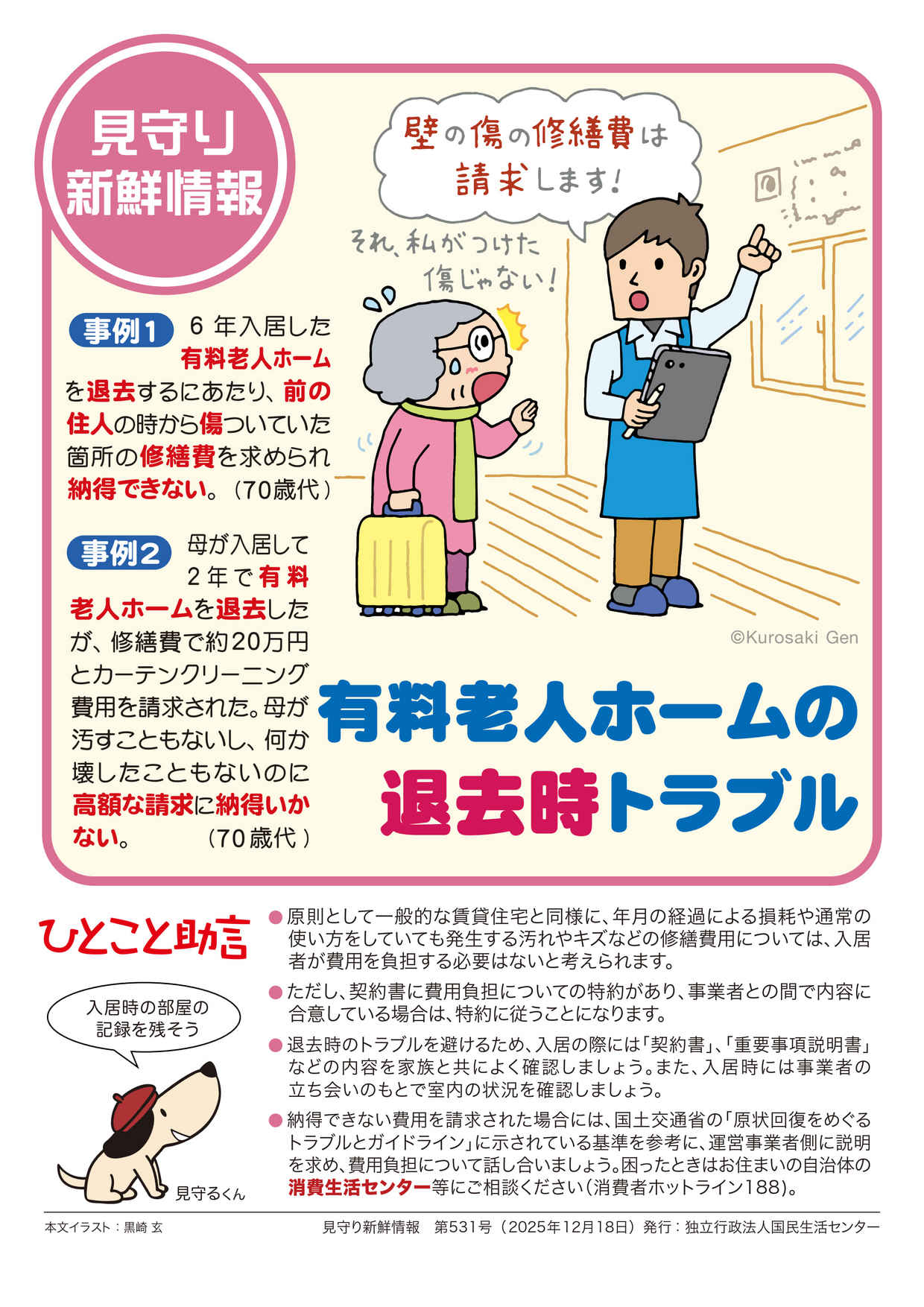 - 2025/12/19 見守り新鮮情報 第531号 有料老人ホームの退去時トラブル