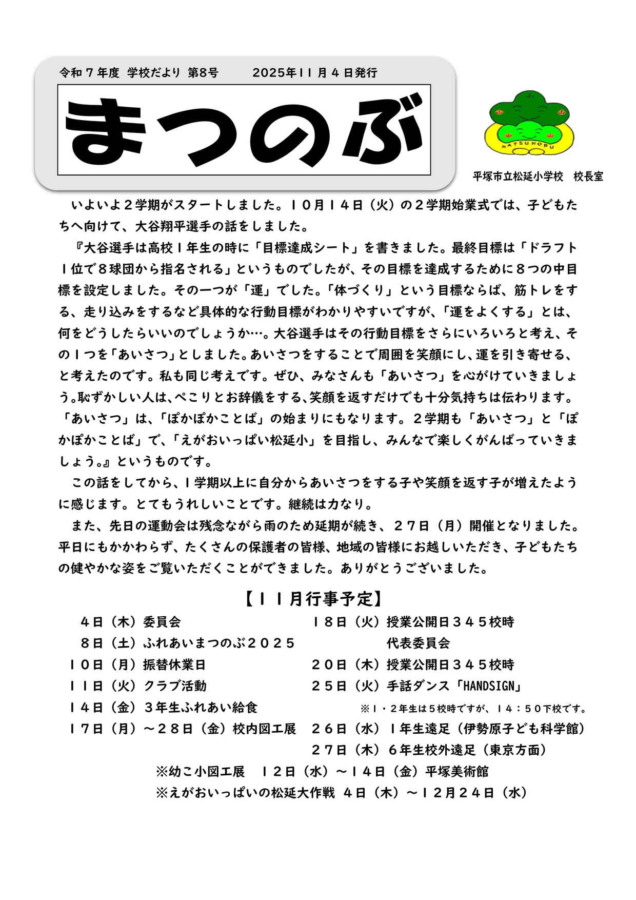 - 2025/11/04 松延小学校 学校だより「まつのぶ」 令和7年度 第8号