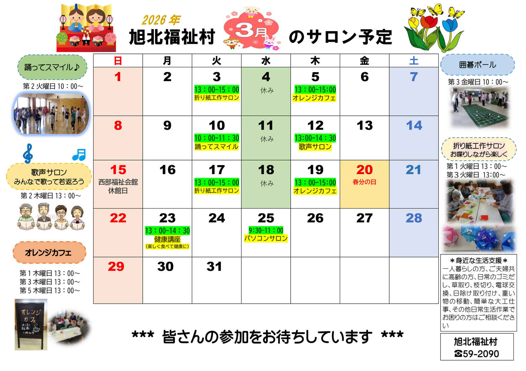 - 2026/02/02 旭北福祉村 サロン予定表 2026年2月-3月