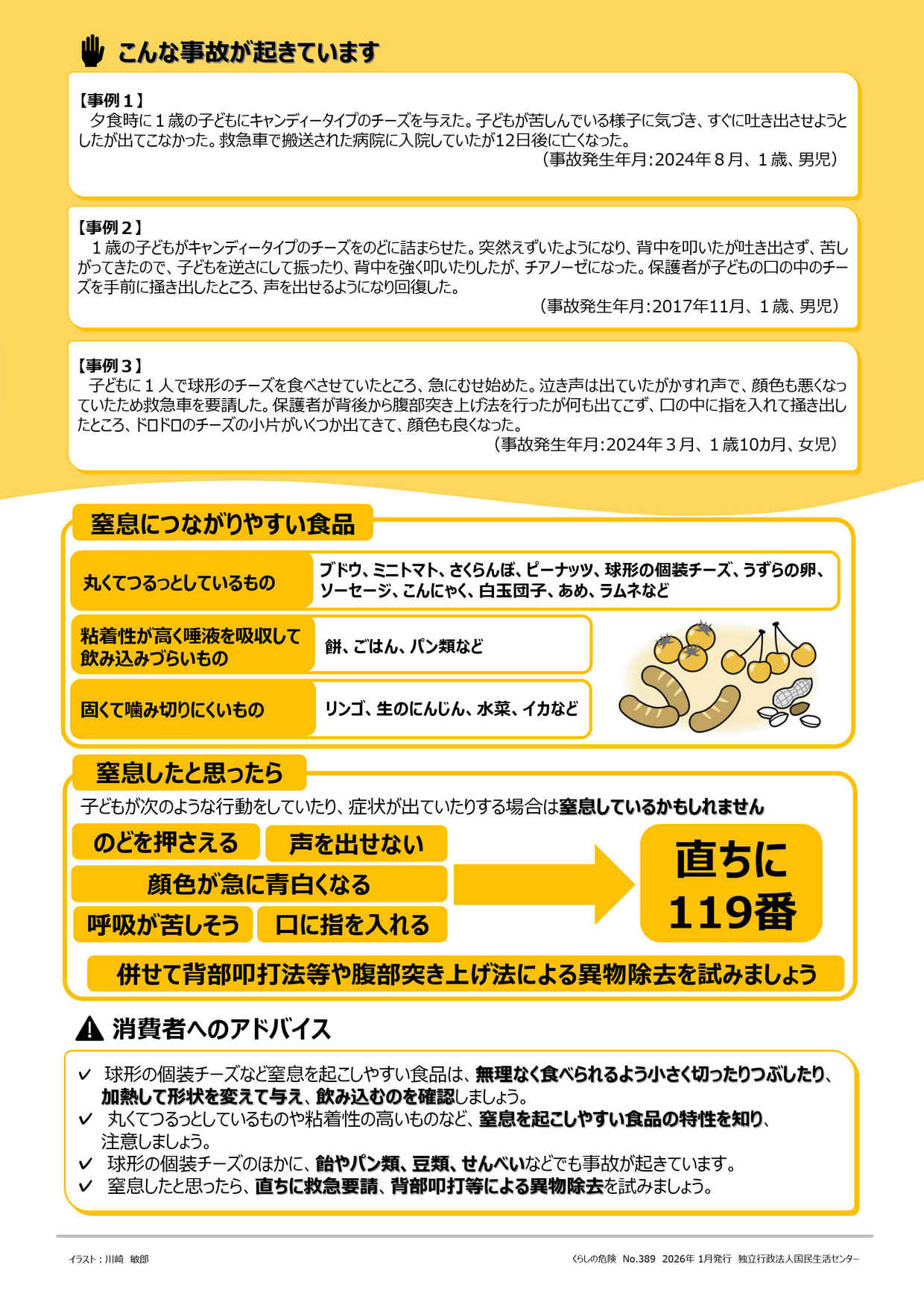 - 2026/01/29 くらしの危険 389号 「球形のチーズによる子どもの窒息に注意」