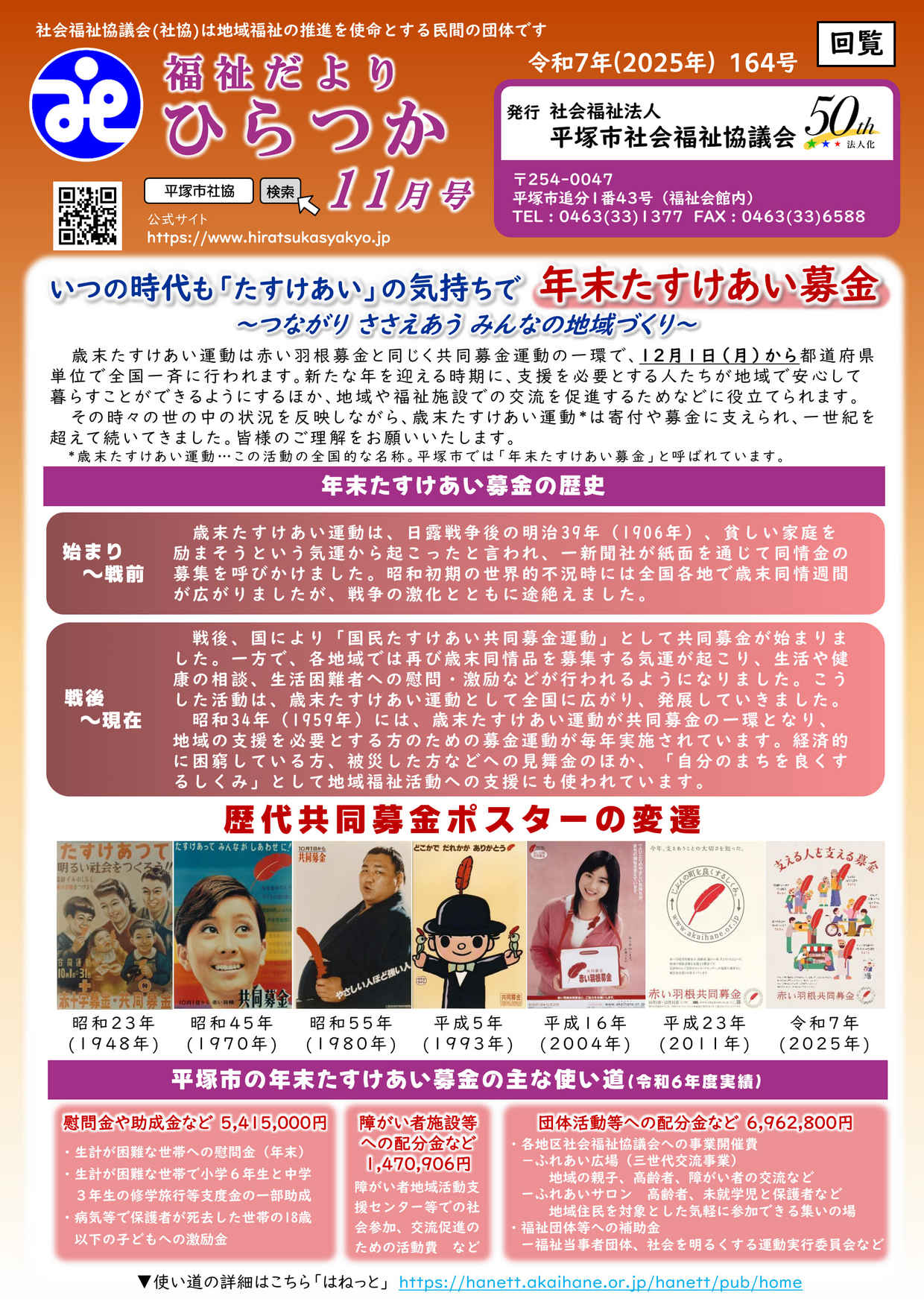 - 2025/11/01 11月度自治会回覧-3 福祉だより ひらつか11月号 164号