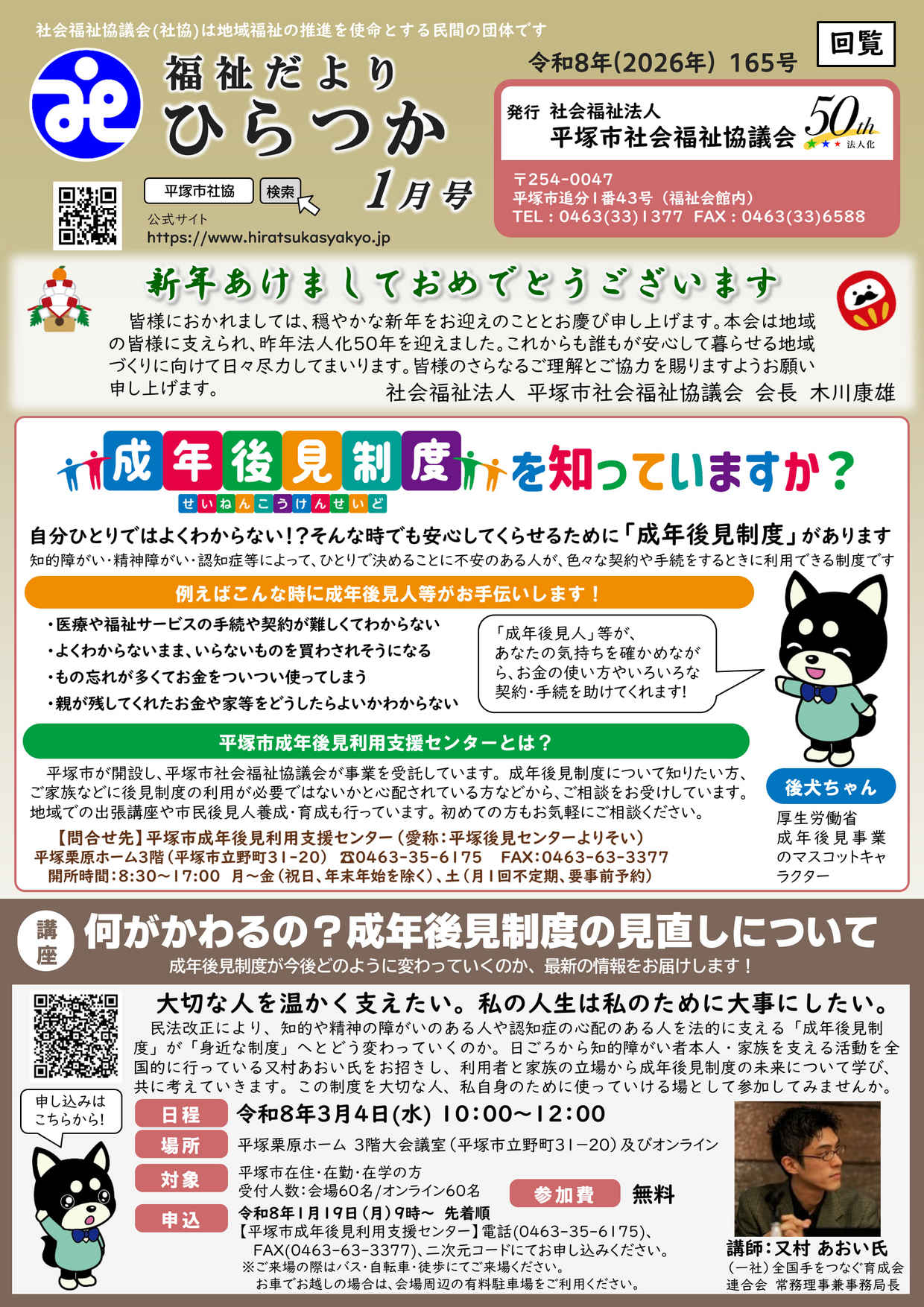 - 2026/01/01 1月度自治会回覧-1 福祉だより ひらつか 165号 成年後見制度を知っていますか