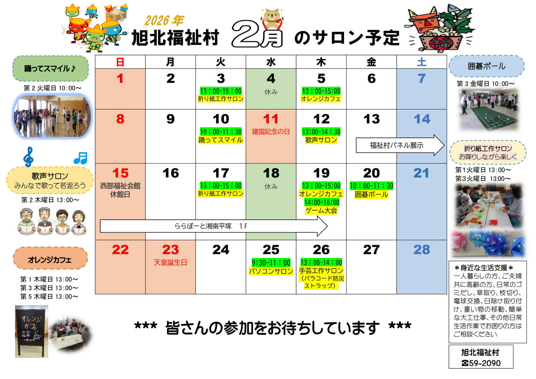 - 2026/01/05 旭北福祉村 サロン予定表 2026年1月-年2月
