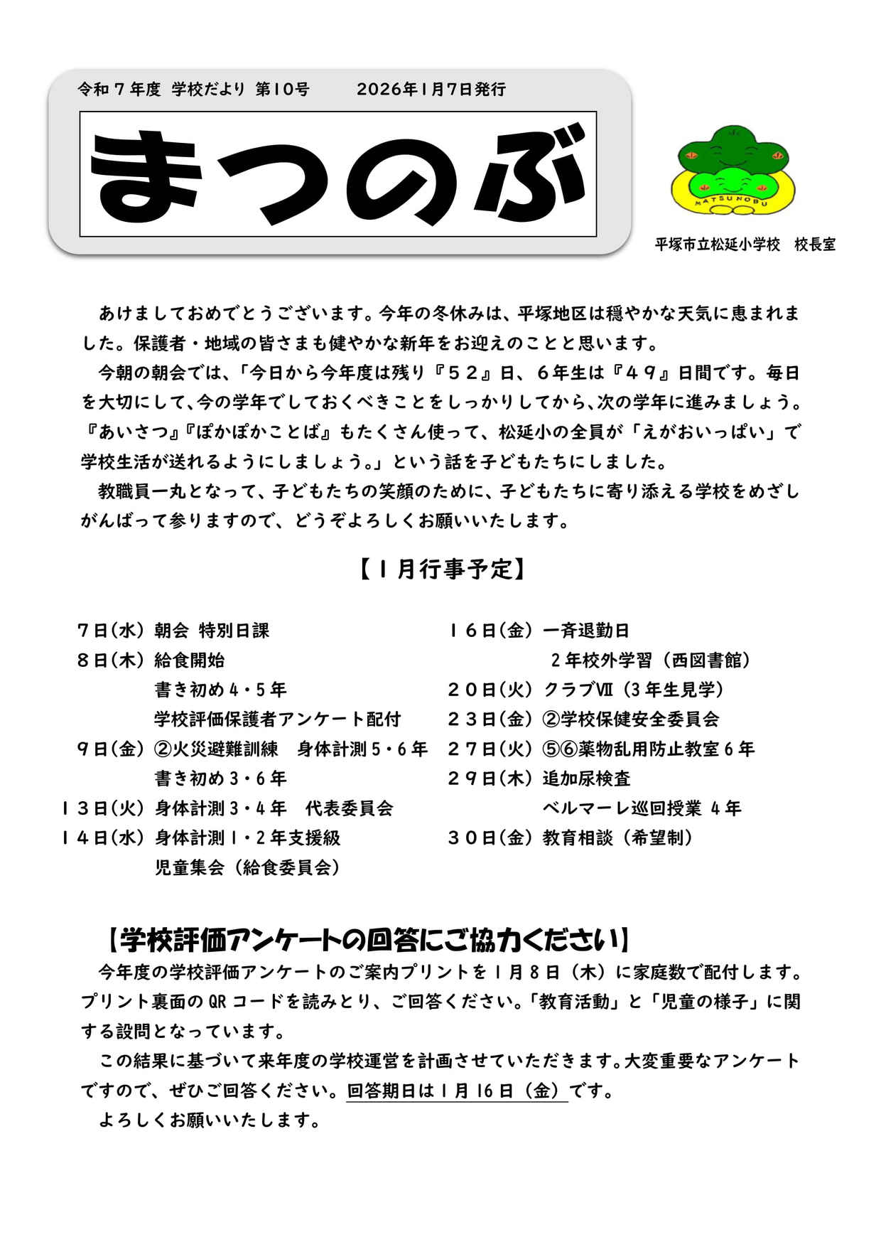 - 2026/01/07 松延小学校 学校だより「まつのぶ」 令和7年度 第10号