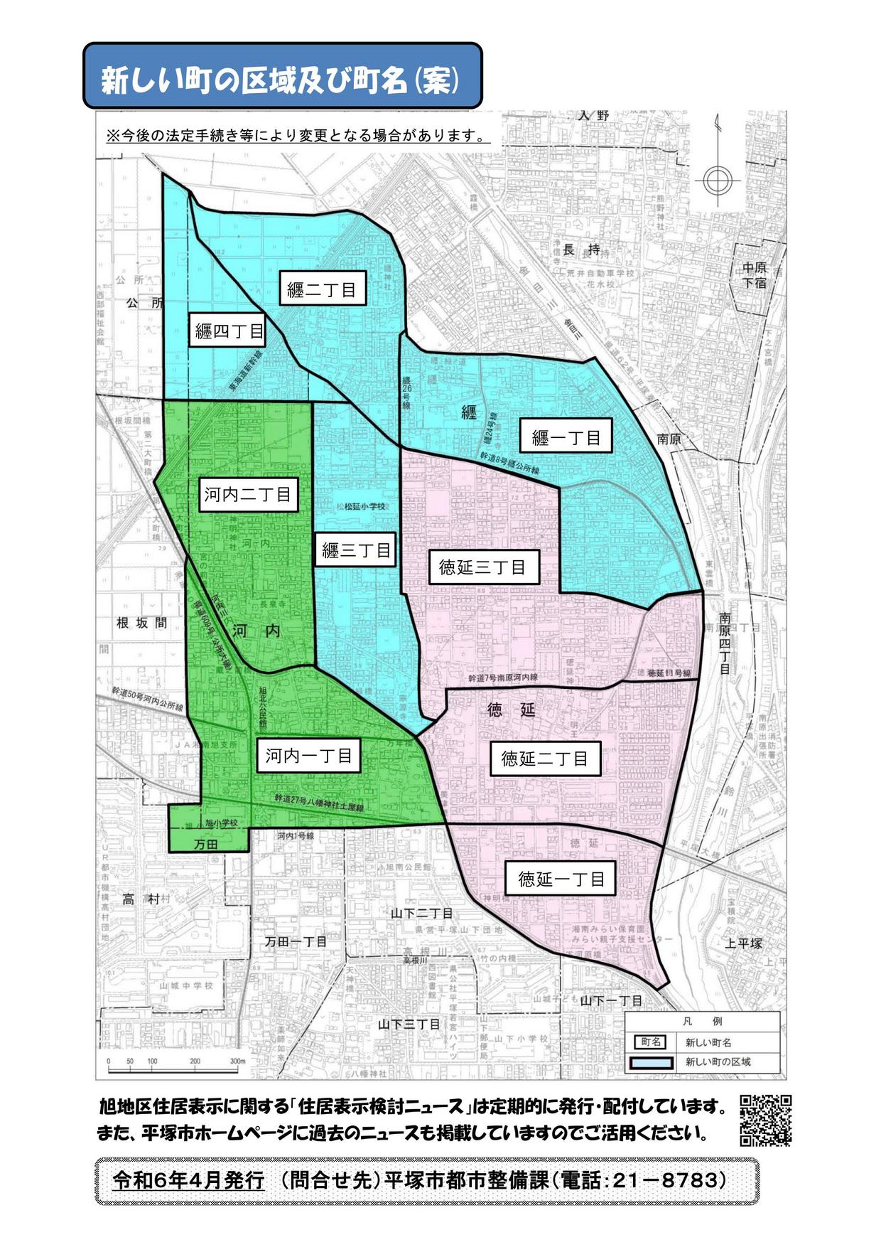 旭北地区は、根坂間、河内、徳延、纒、公所、日向岡の6地区からなっています。