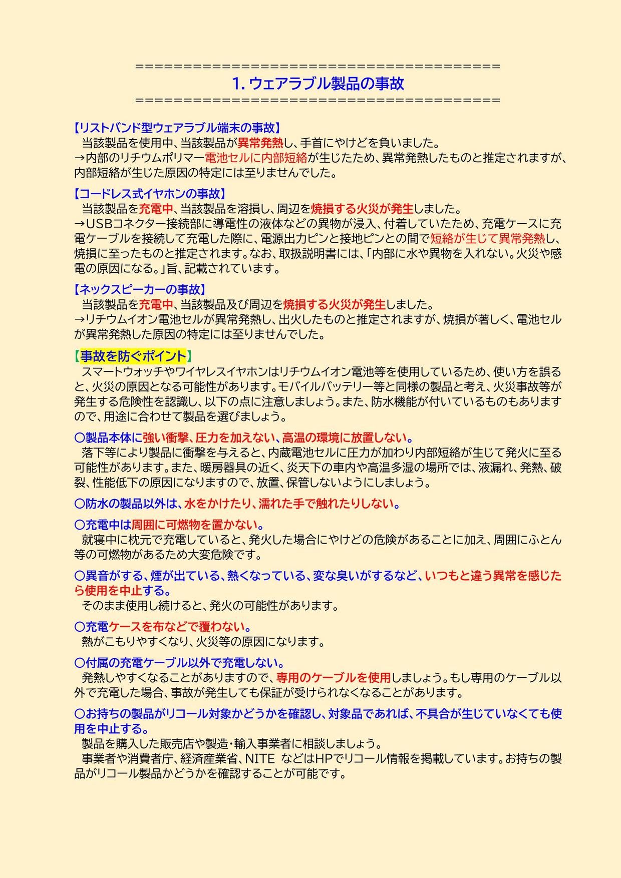 NITE製品安全センターからの情報 「ウェアラブル製品の事故」