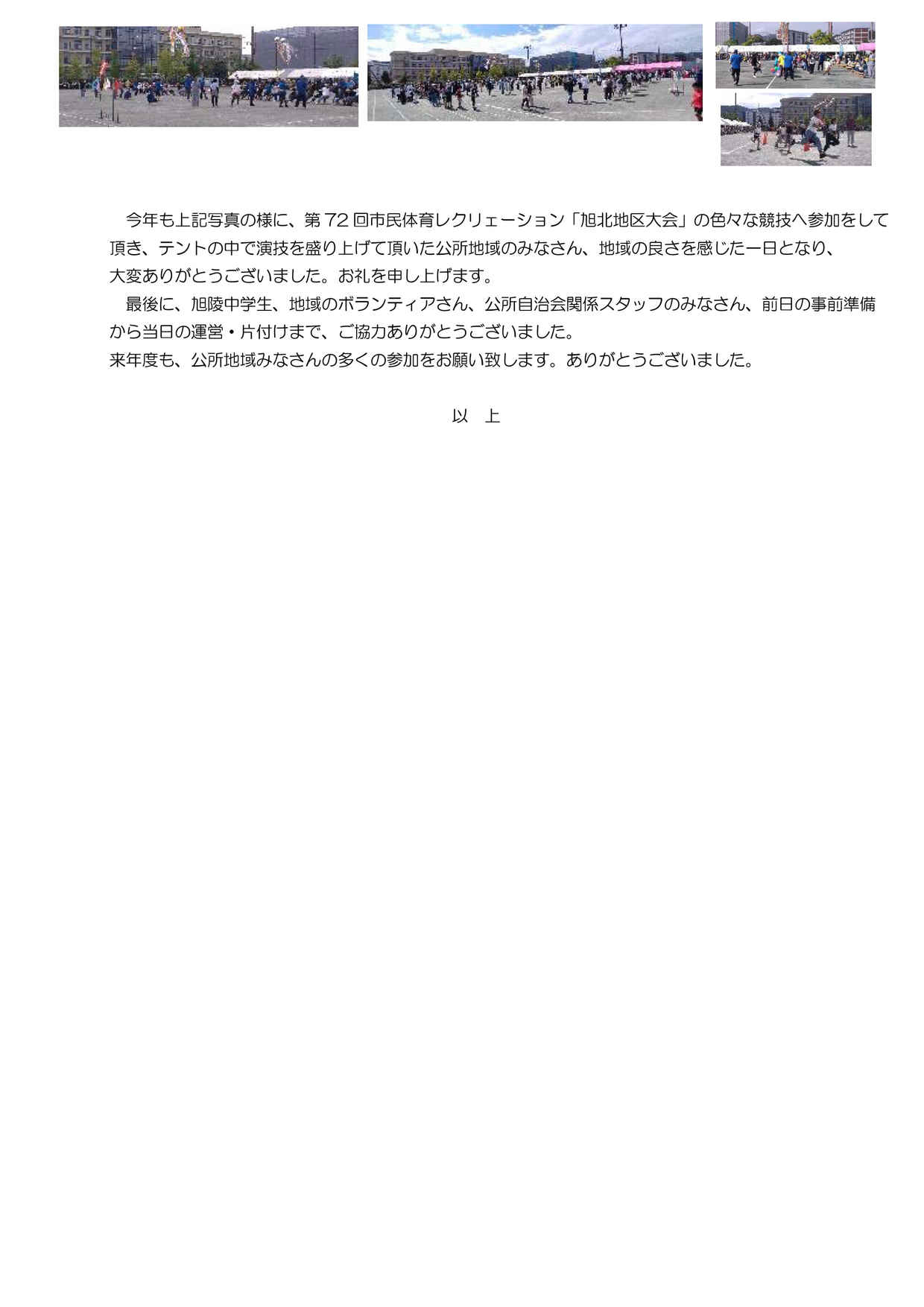 学校も1小学校・1中学校から、小学校4校、中学校3校に増加し、公民館も南北二つに分かれ、昭和58年、旭北公民館が新設・発足し、平成元年には自治会連合会も二つに分かれて活動を開始し現在に至っています。