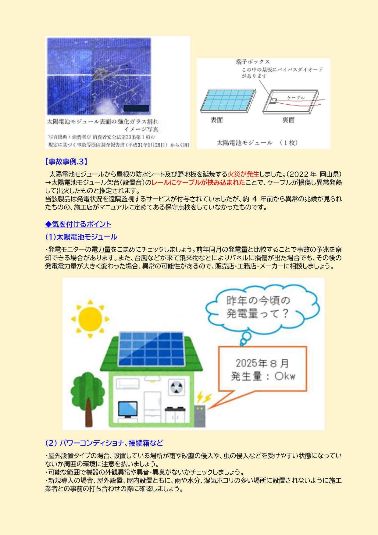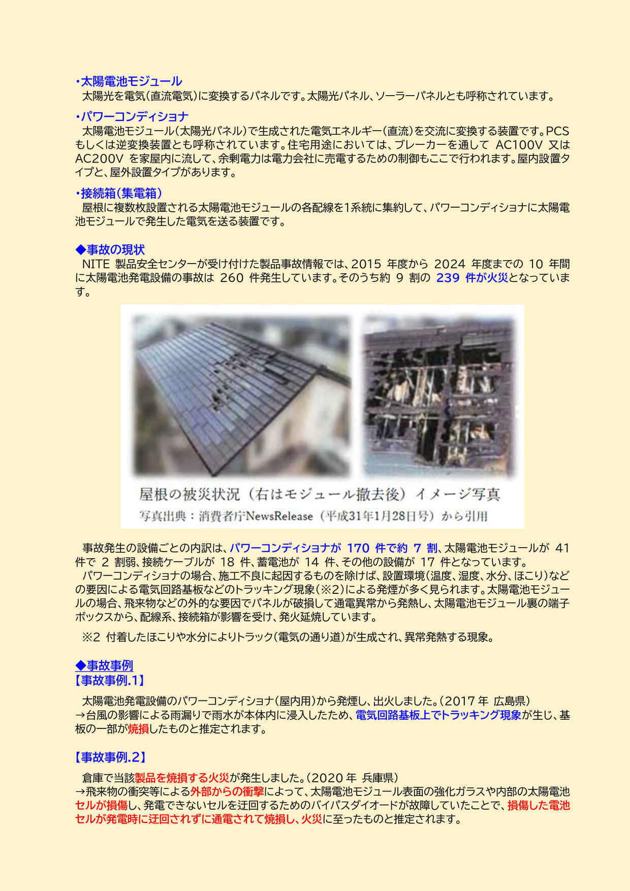 NITE製品安全センターからの情報 「太陽光発電設備の事故」