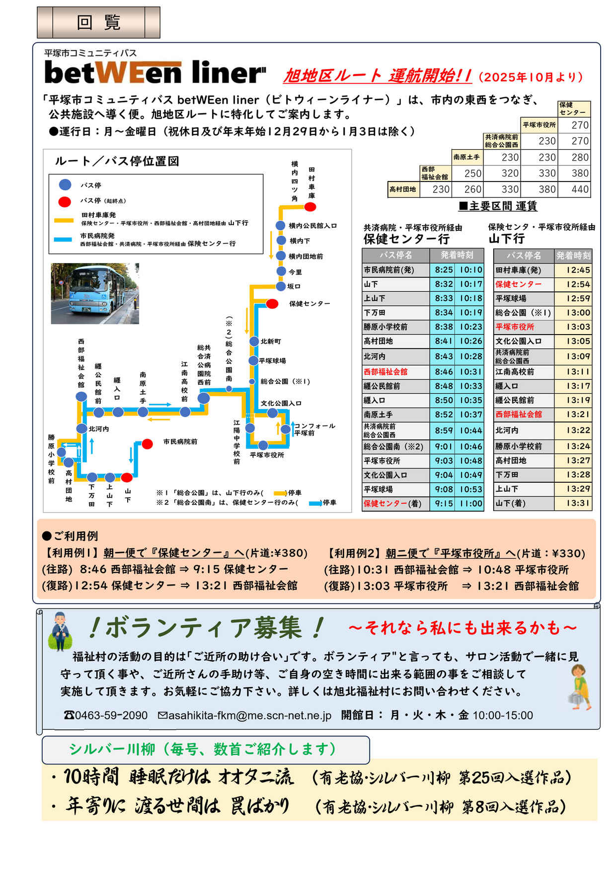 昭和40年代から工事に取りかかった平塚大橋も開通し、それにより道路網も整備され、バス路線も急速に増えました。また、高村団地、山下団地、日向岡の住宅開発、それに近代的な商店街の形成という画期的な発展は、農村風景から住宅地域へと、さらに大きく変貌しました。
