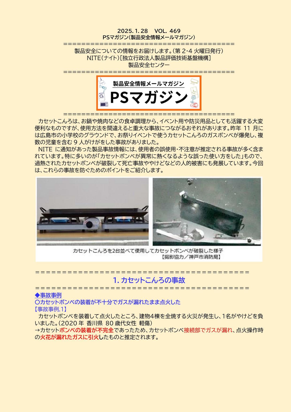 【PSマガジンvol.469】1月28日号「カセットこんろの事故」
