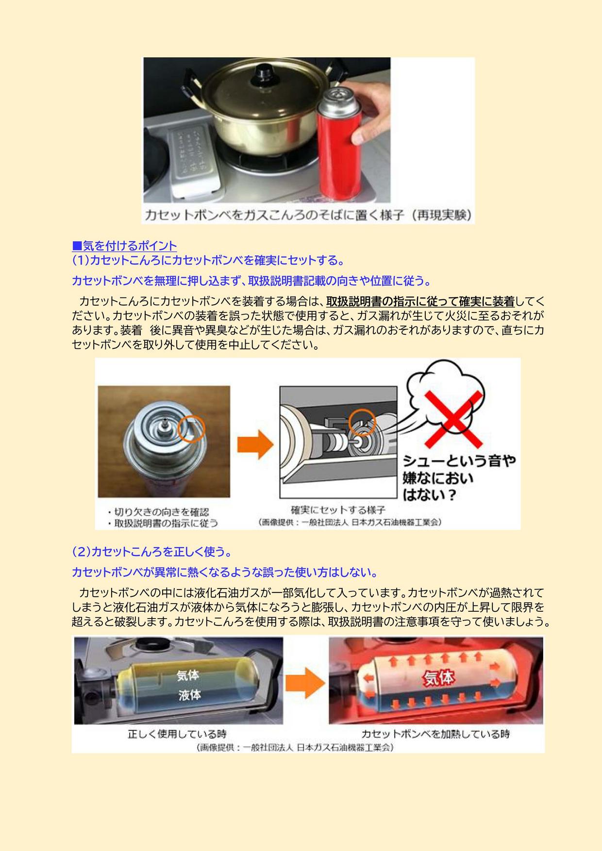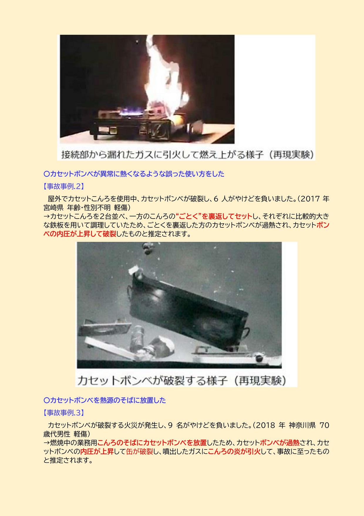 ■NITEでは、昨年2024年12月26日に注意喚起として『“NO MORE ボンベ破裂”〜約4割が誤使用・不注意 「カセットこんろの事故」を防ぐ3つのポイント〜』をプレスリリースしています。今回ご紹介したカセットこんろの事故の詳しい分析結果を掲載しています。ぜひご覧ください。 ■新作映像資料 カセットこんろ「9. 2台並べたカセットこんろの破裂3」 |