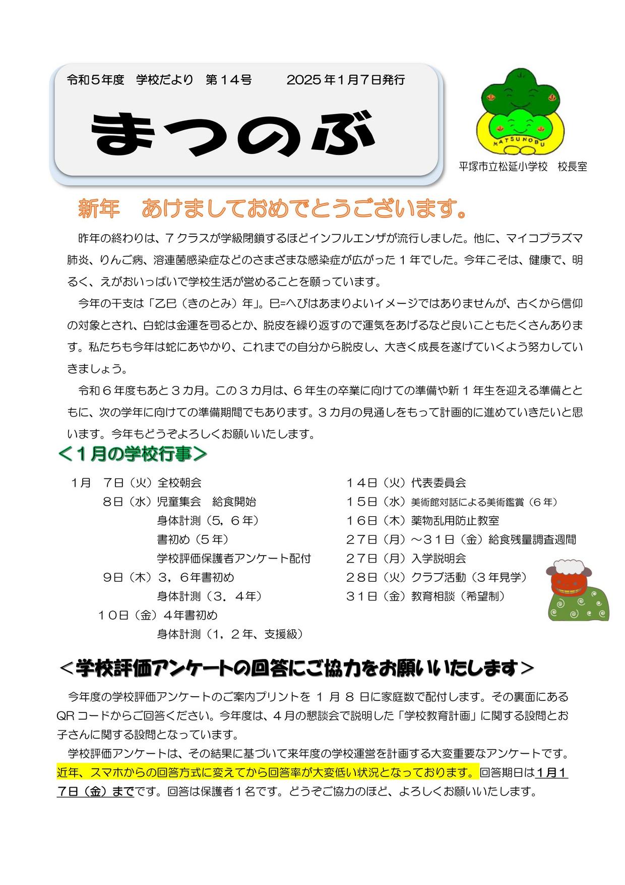 - 2026/03/02 松延小学校 学校だより「まつのぶ」 令和7年度 第12号