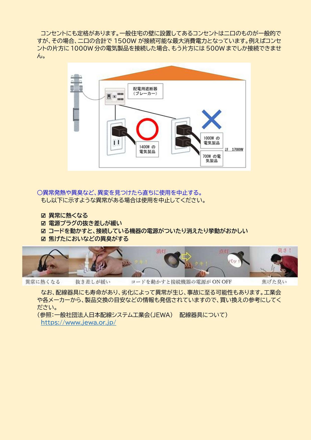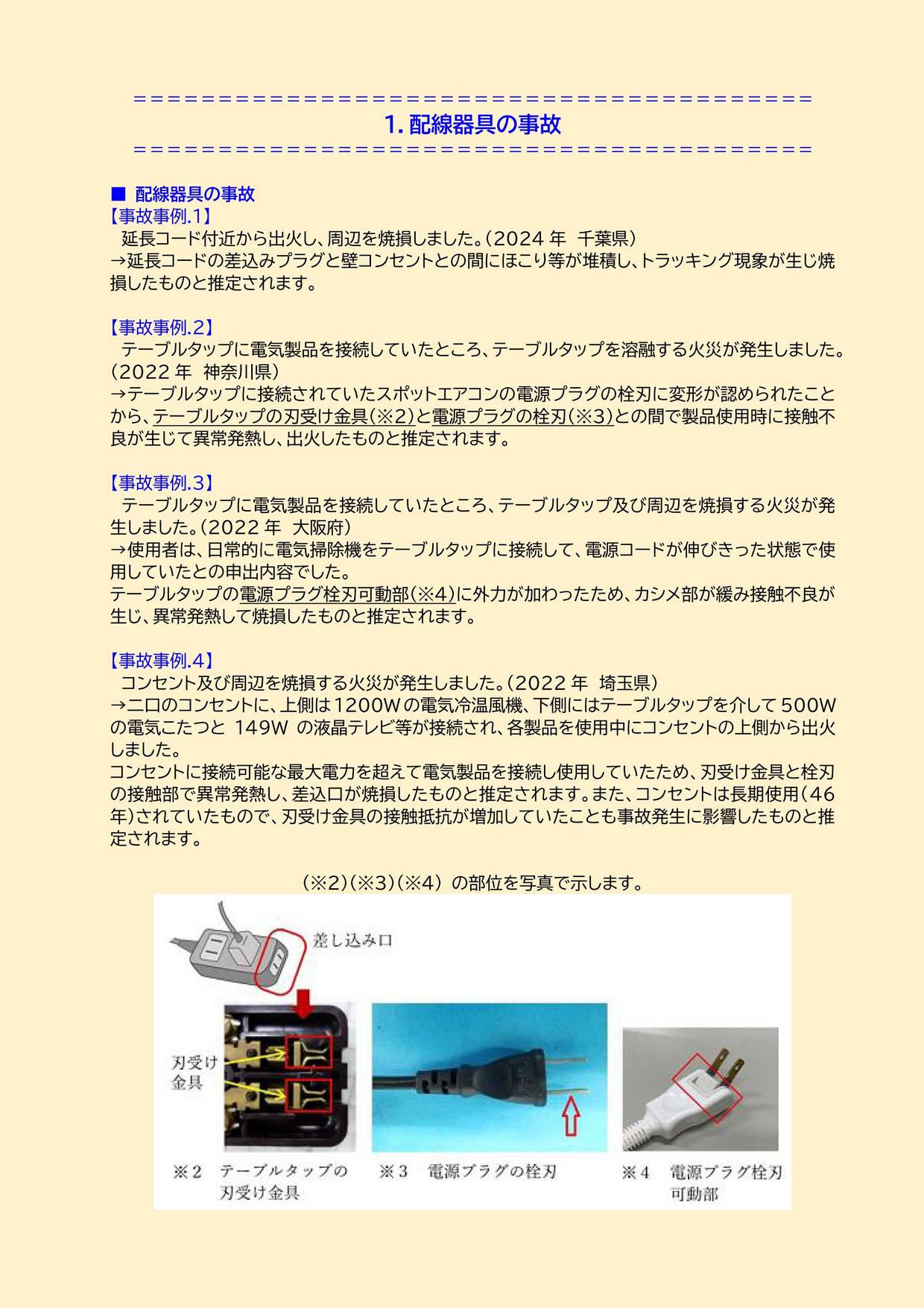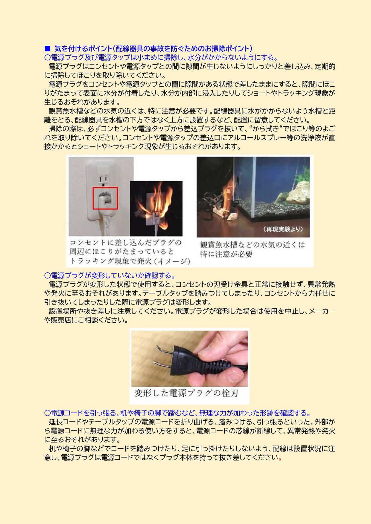 (参照:一般社団法人日本配線システム工業会(JEWA) 配線器具について) ■NITEでは2024年11月28日に注意喚起として『ホコリも積もれば事故となる 〜年末は配線器具の掃除・チェックもお忘れなく〜』をプレスリリースしました。 ご紹介した配線器具の詳しい分析結果を掲載しています。ぜひご覧ください。 ◆ポスター:コンセント周りのNG5選 ![]() |