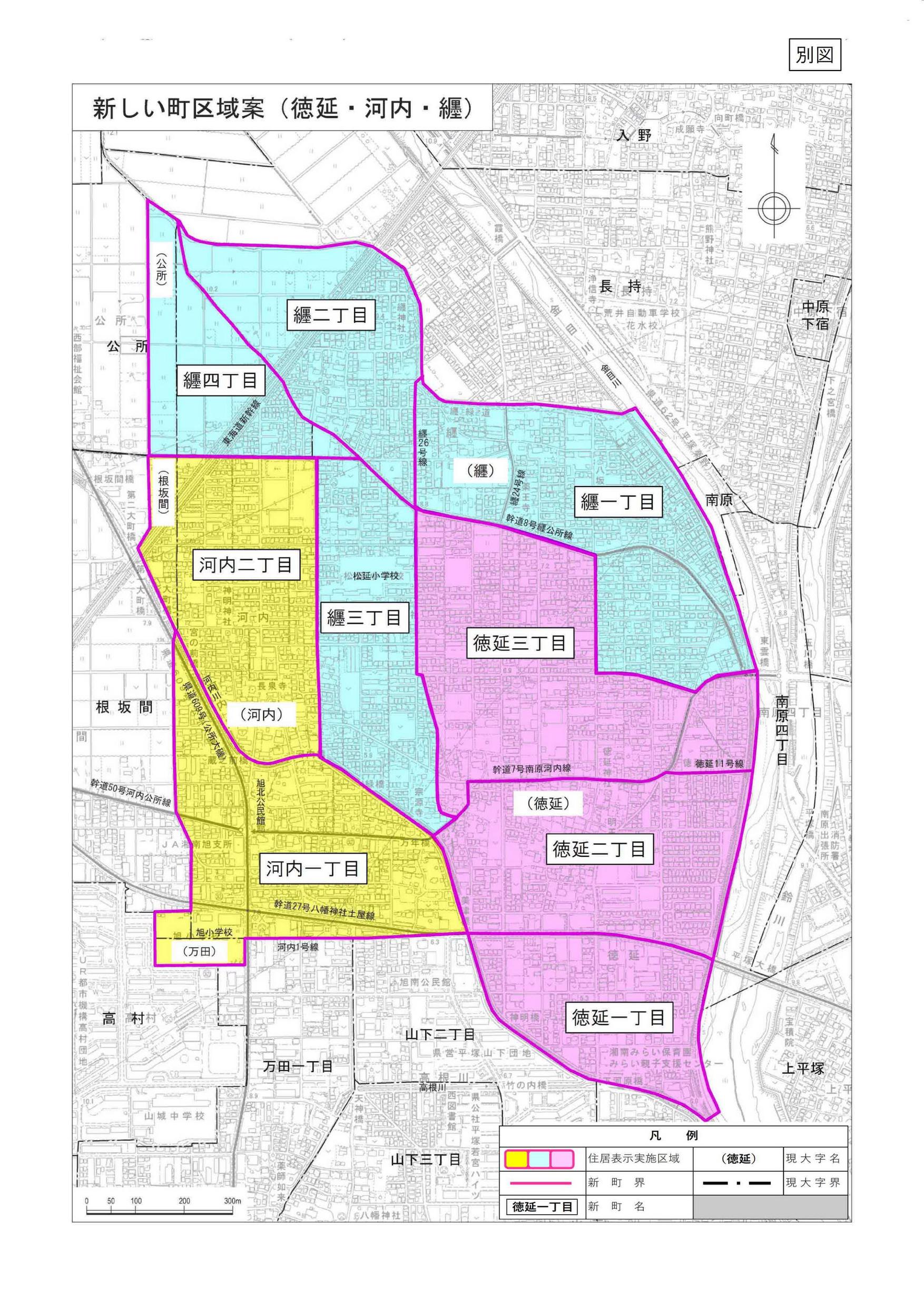 旭北地区は、根坂間、河内、徳延、纒、公所、日向岡の6地区からなっています。