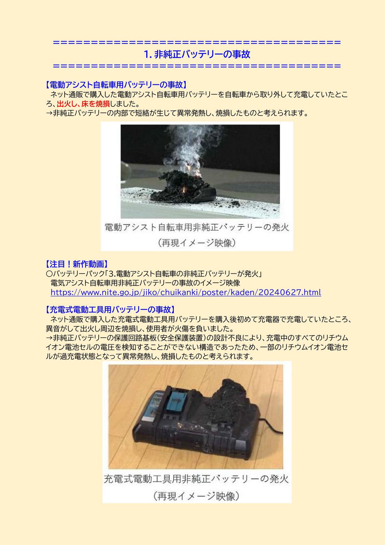 NITE製品安全センターからの情報 「非純正バッテリーの事故」