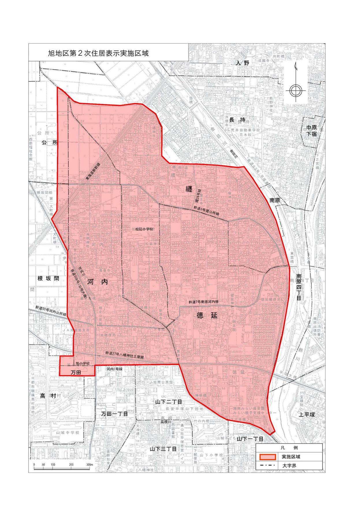 旭北地区は、根坂間、河内、徳延、纒、公所、日向岡の6地区からなっています。