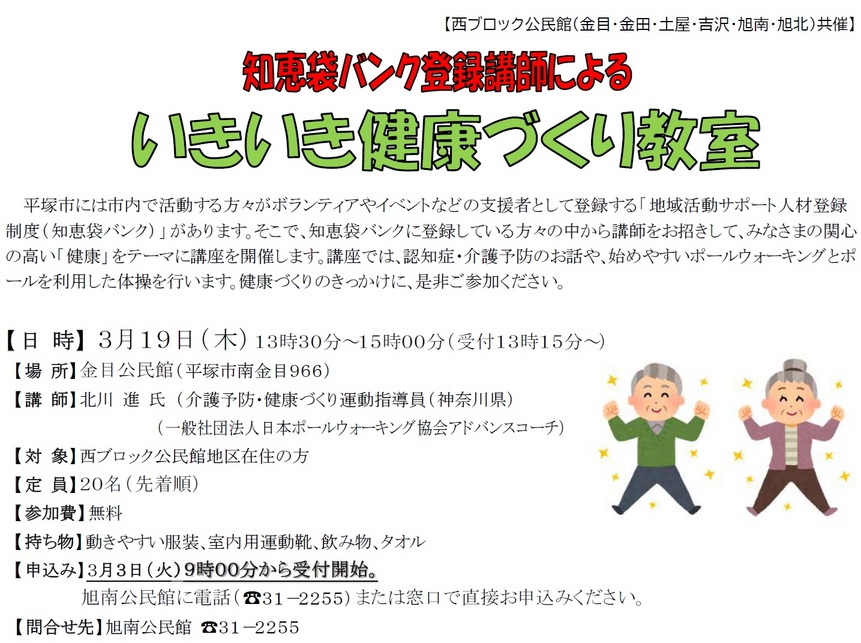 - 2026/03/11 知恵袋バンク登録講師による いきいき健康づくり教室 参加者募集