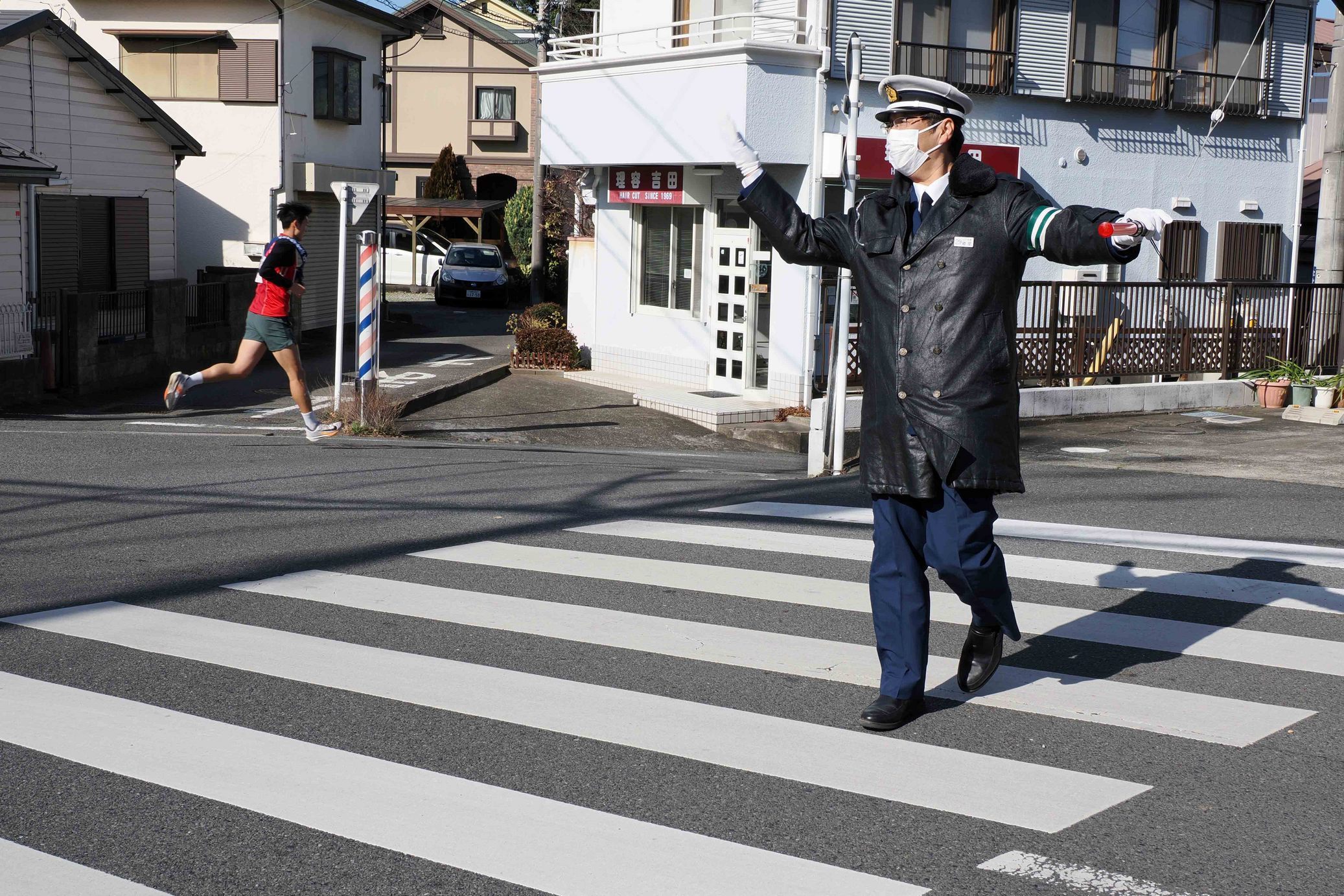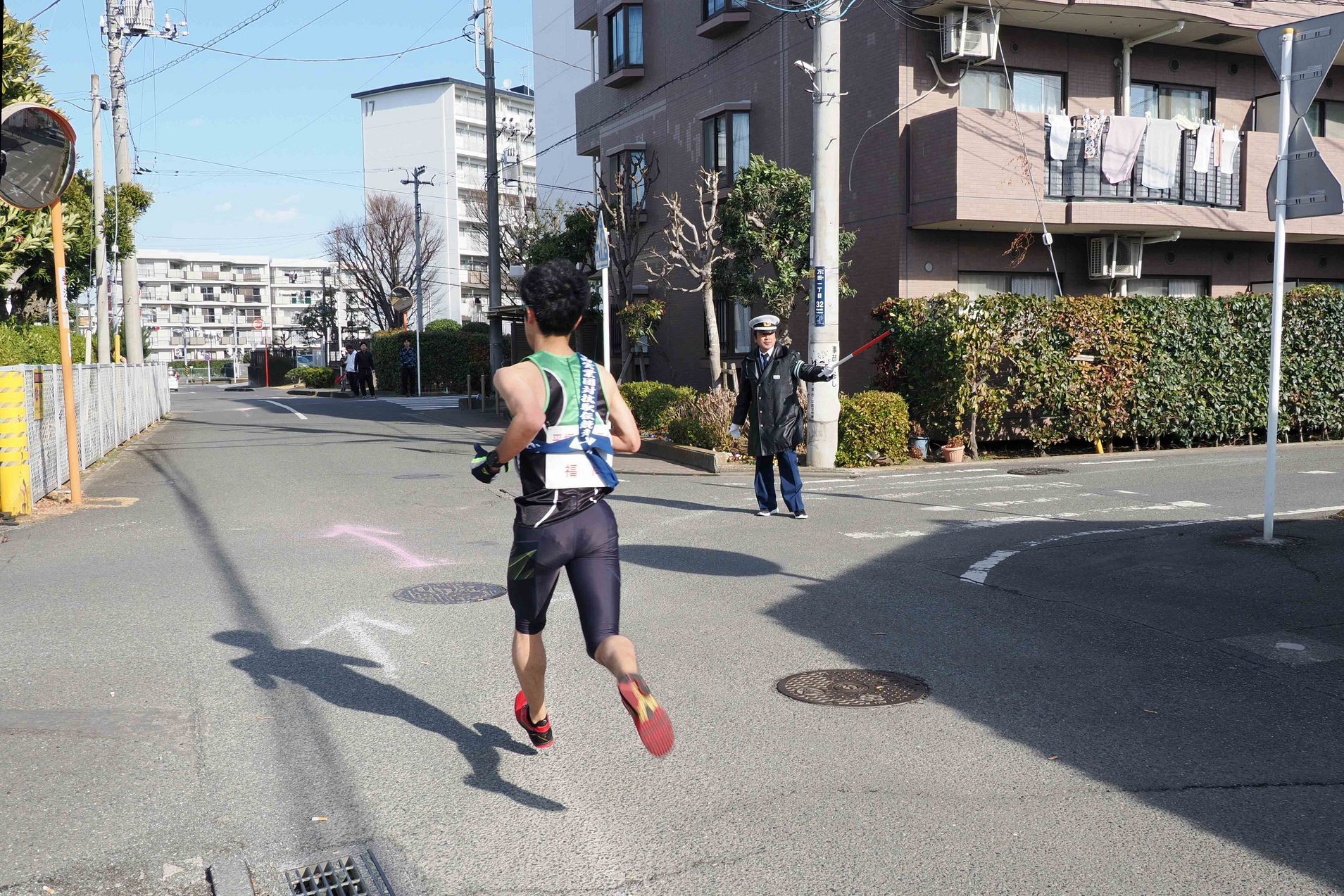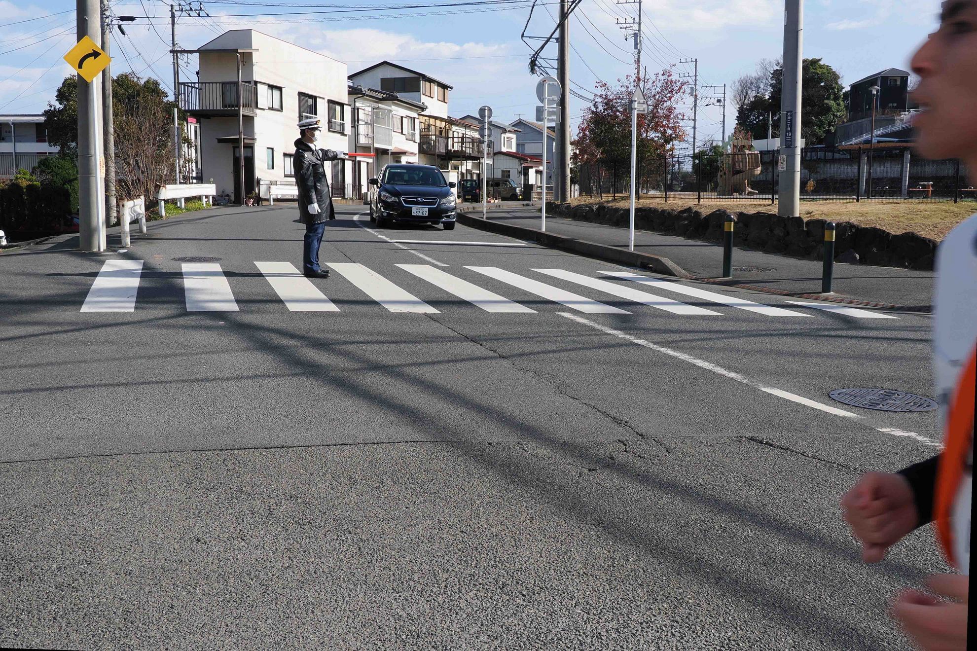 交通安全協会山下支部の担当は、万田貝殻坂公園前交差点とエクレール湘南平塚前の2ヶ所です。 10時頃、もうちょっとで万田貝殻坂公園前交差点に着くところでしたが、万田貝塚住宅の坂道を自転車に乗った女性が、一時停止の標識があるのに止まらずに道路を突っ切っていきました。去年も同じように女性が、突っ切っていきました。もしかしたら、時間帯も同じなので去年と同じ女性だったりして? その人にとっては些細なことと思っているのかもしれませんが、それが癖になってしまうと、何かの時に事故に遭ってしまうかもしれません。一時停止は守るようにして欲しいです。 警察官の人来ているかなと見ていたら、公園に警察のバイクが止まっていました。しばらくして、エクレール湘南平塚側から来ました。先にそちらの方を見に行っていたようです。 駅伝時の交通指導の様子を載せました。ご覧下さい。 (柏木) |