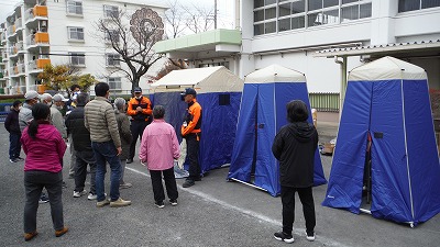 @室内用テントの設置A段ボールベッドの作製Bマンホールトイレの設置と、機材は配備されているものの、使ったことがないものを実際に使ってみると、様々な課題が見えてきます。一番は、ご高齢の方だけではとても運営できないということです。機材の設置も含め、機動力を発揮するには若い世代の方々の協力がなければ初動が遅れ、二次災害のリスクが高まります。改めて自助・共助の大切さに気付かされました。 |