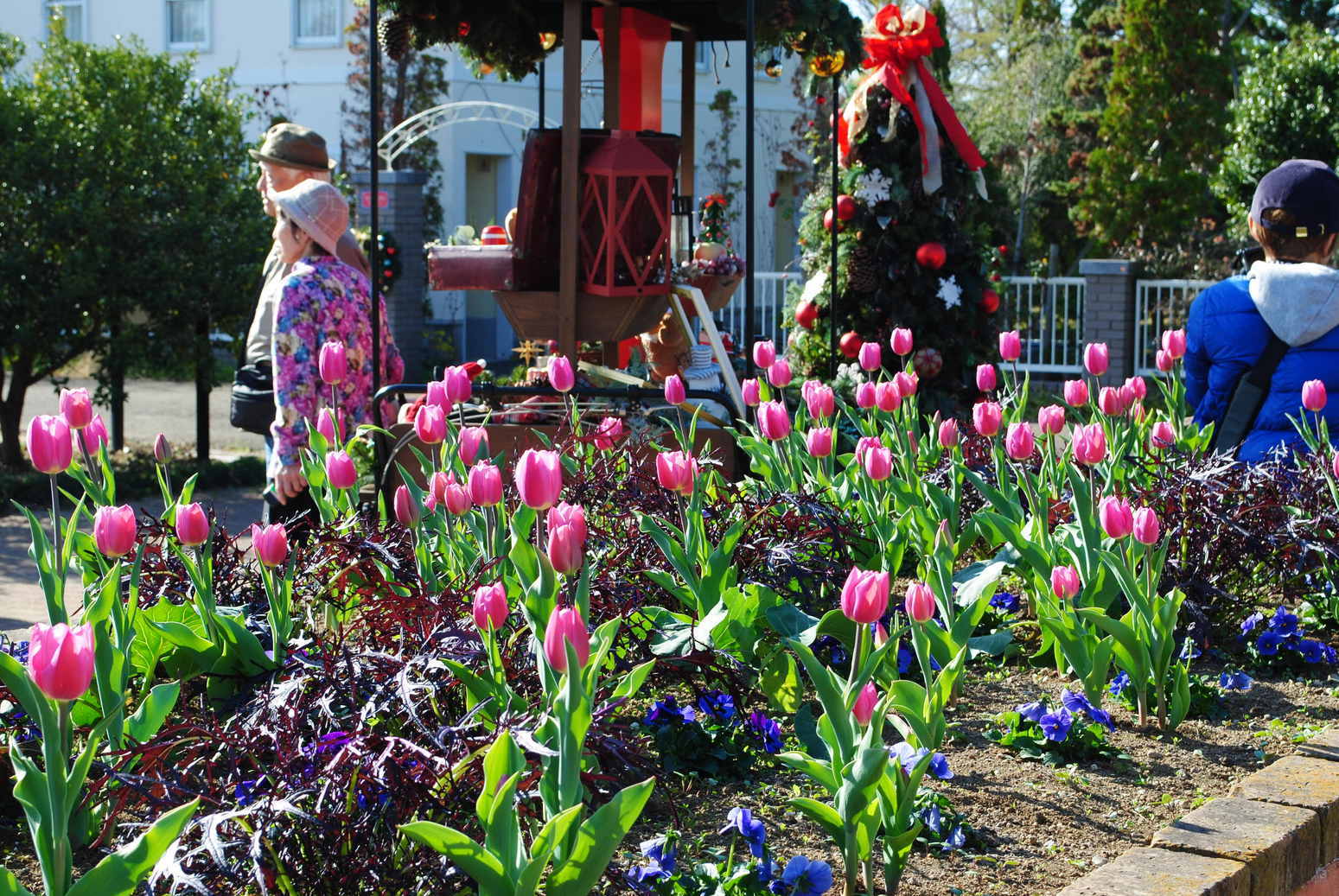 花菜ガーデンから中継があり、子 育て支援たんぽぽを終えてそのま まアイスチューリップを今年も見 に行ってきました。検定の問題に ありましたが、アイスチューリッ プは開花している期間が1ケ月と 長いのが特徴との事でした。まだ 少し早い気がしましたがきれいに 咲いていました。クリスマスバー ジョンの置物もありました。 (黒木) |