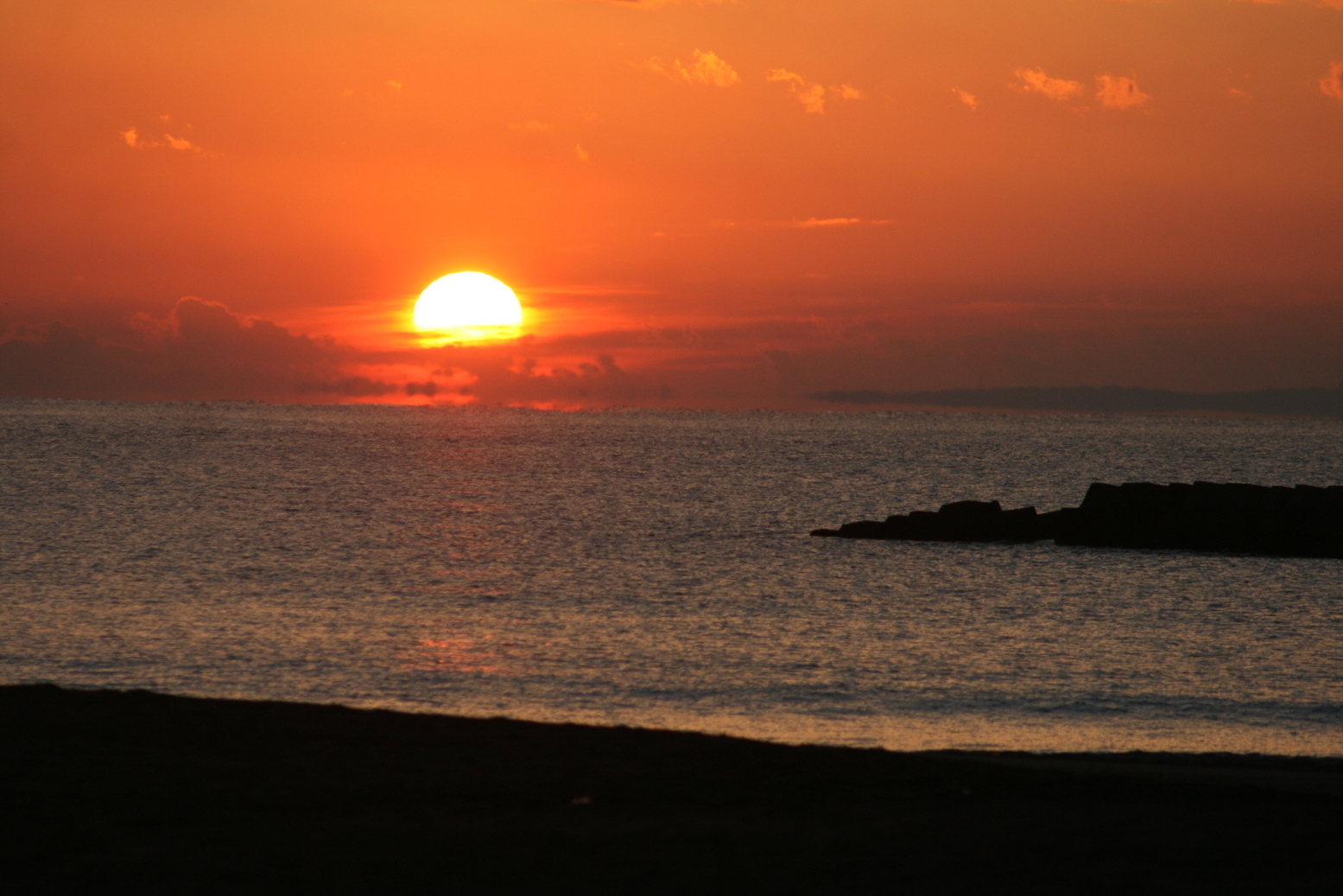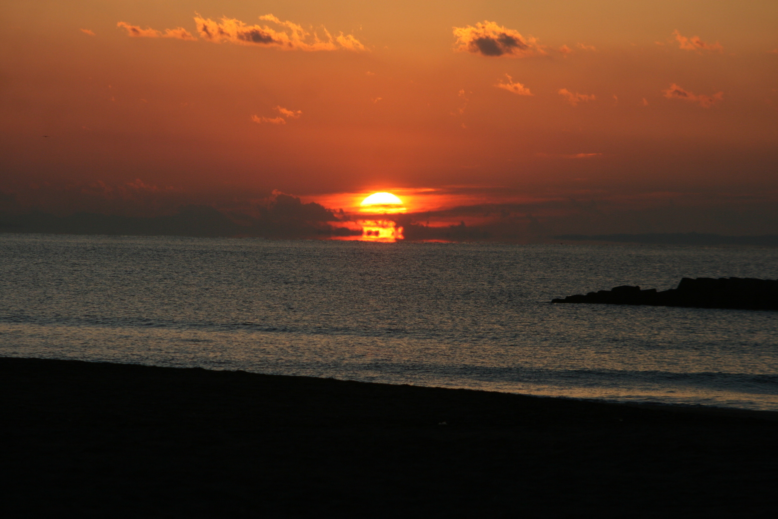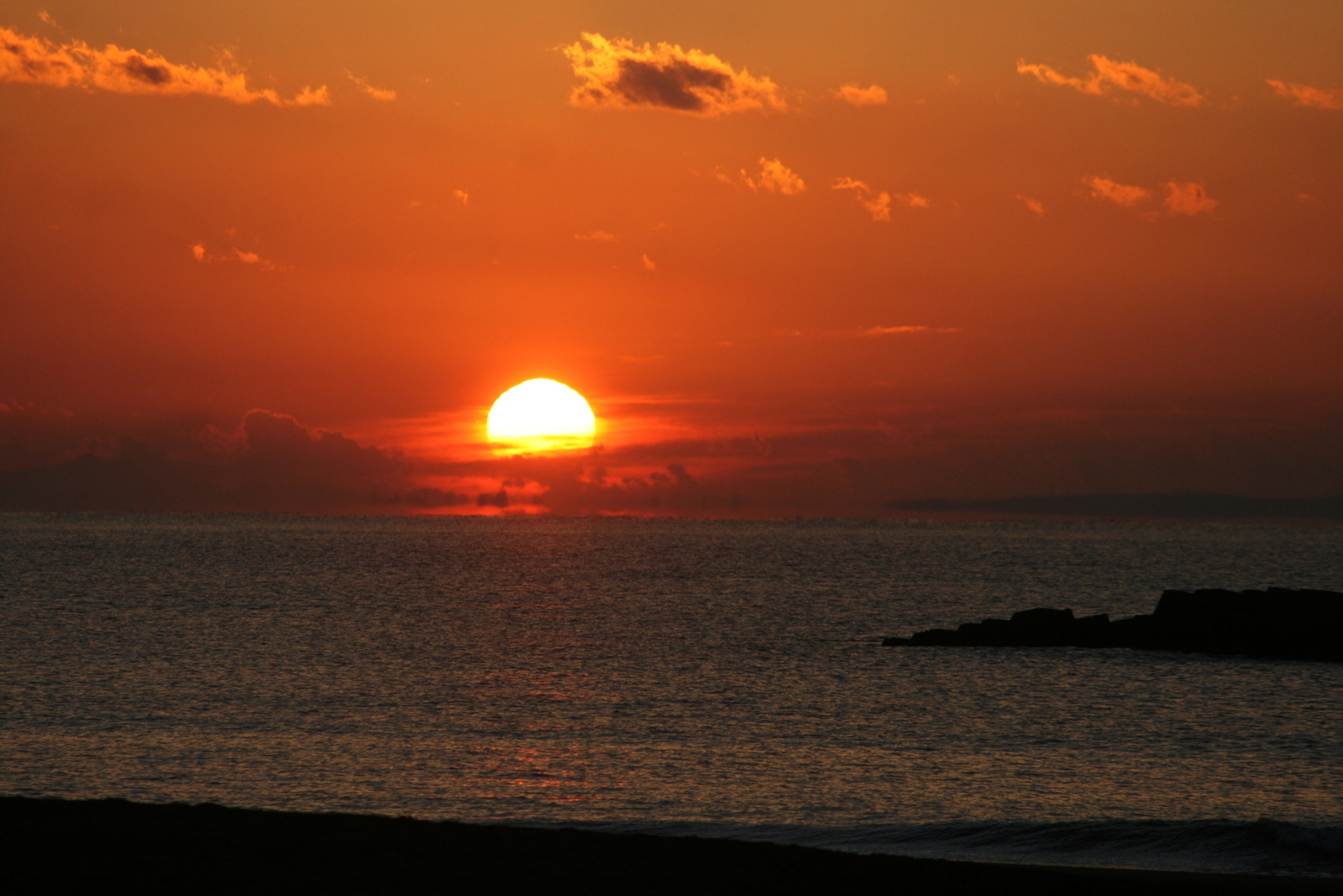 31日水曜日晴れ6時51分に ひらつかの海から納め日の出を 拝みました。 椎間板ヘルニア再発で痛む左脚 を引きずりながらやっとで海岸 まで辿り着きこれを撮る事が出 来ました。 明日の初日の出の予行練習です が、痛くて痛くて泣いています。 (黒木) |