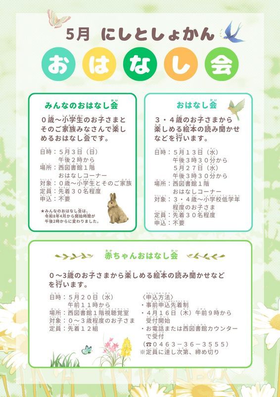 - 2026/04/16 【西図書館】5月おはなし会のお知らせ