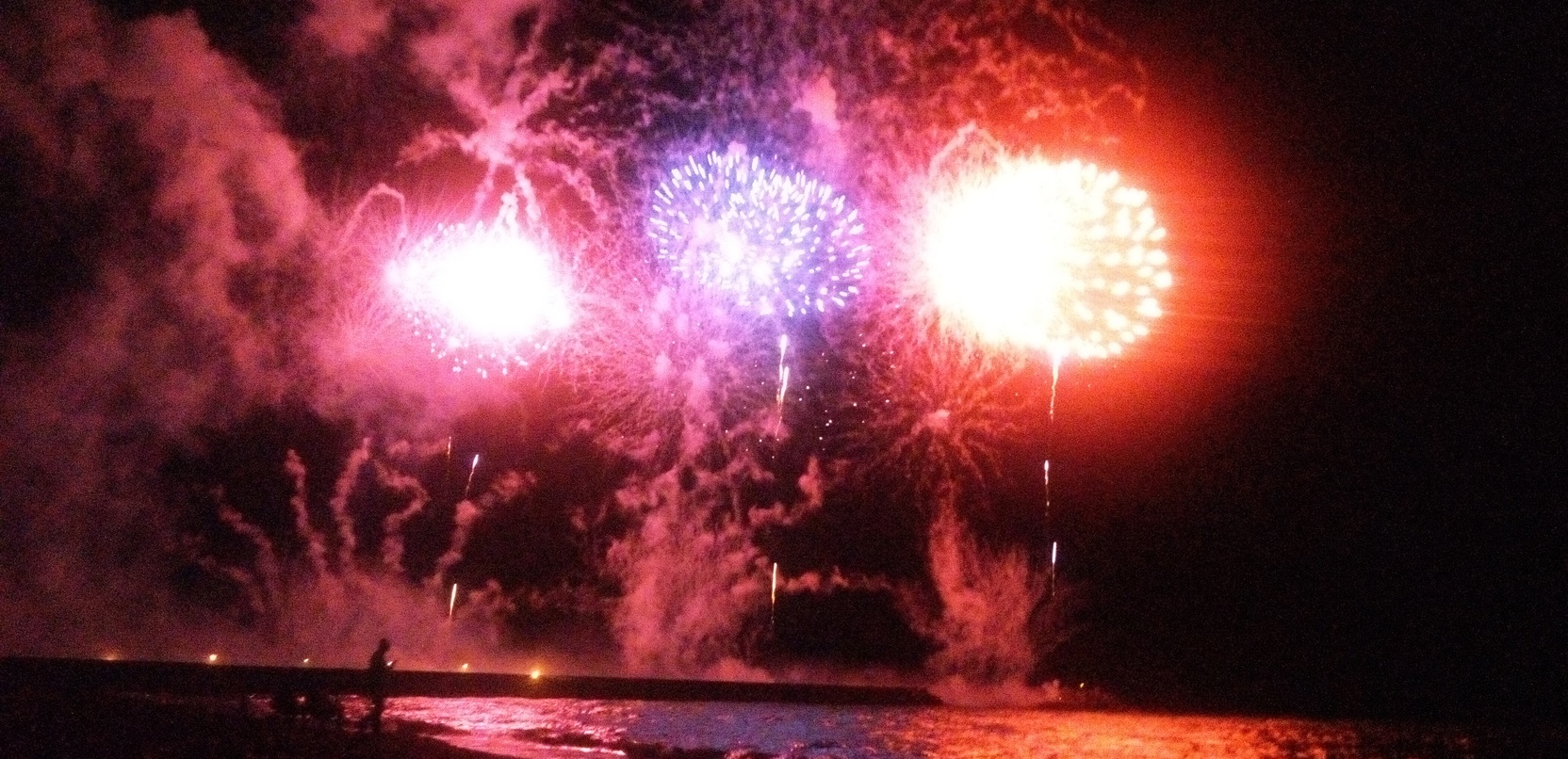 8月25日(金)19時から 20時まで開催された第71 回湘南ひらつか花火大会を観 て来ました。 天候にも恵まれて涼しい海風 の中、海近くの砂浜にござを 敷いて高まくらで空を仰ぎ見 て花火鑑賞をしました。 どこかの有名花火大会の様に 高いフェンスも無く、波の音 とドーンと地響きする花火の 音の中、至福のひと時を過ご して来ました。 PDFにも写真を掲載しまし たので、良かったらそちらも 見て下さい。 (黒木) |