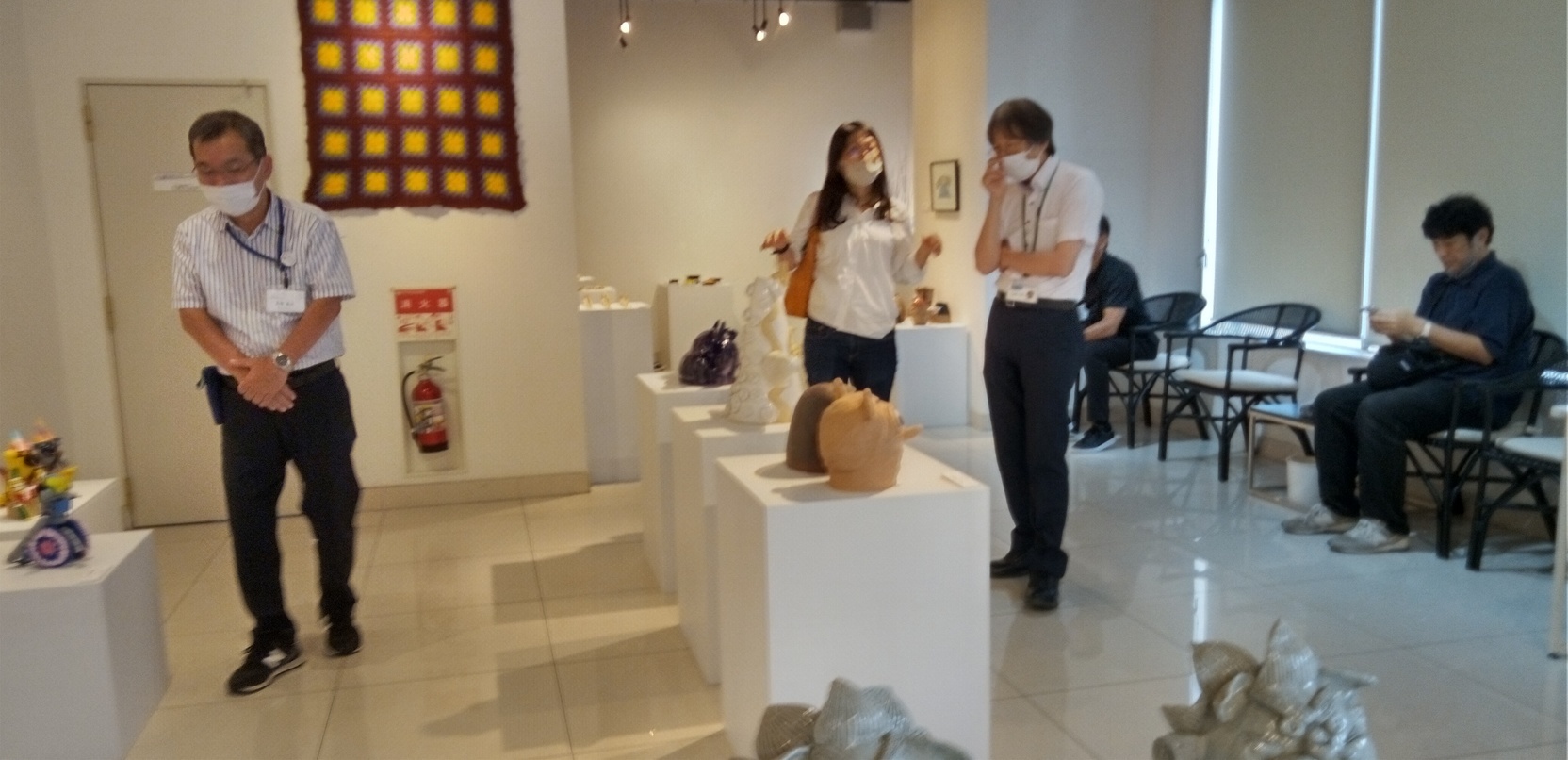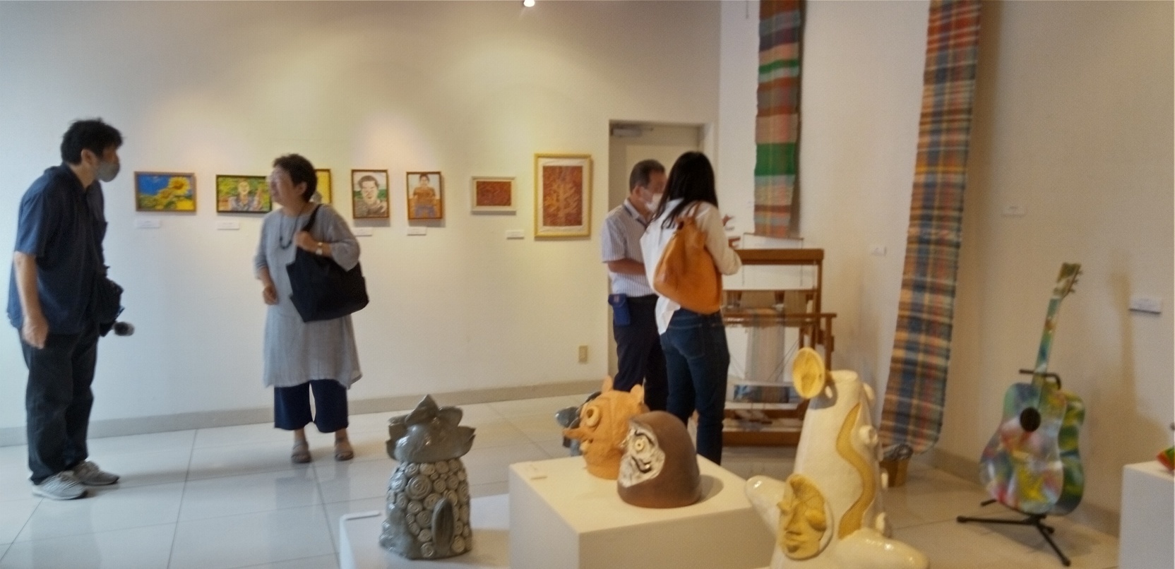 ゴロゴロと鳴る中、雷雨を覚悟で元麻生ギャラリーに 行、作品を観て来ました。 どの作品も目をくぎ付けにする作品ばかりでした。会場 には進和学園の理事長の姿も有りました。 30日の最終日は15時迄、ひとりでも多くの方に見て 頂きたいと思いました。(黒木) |