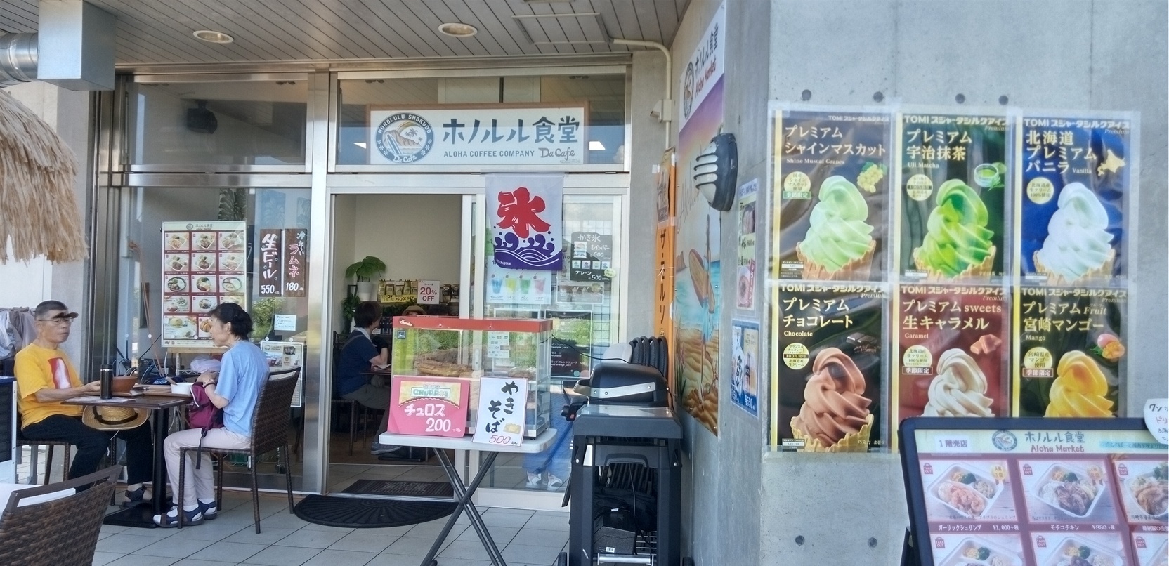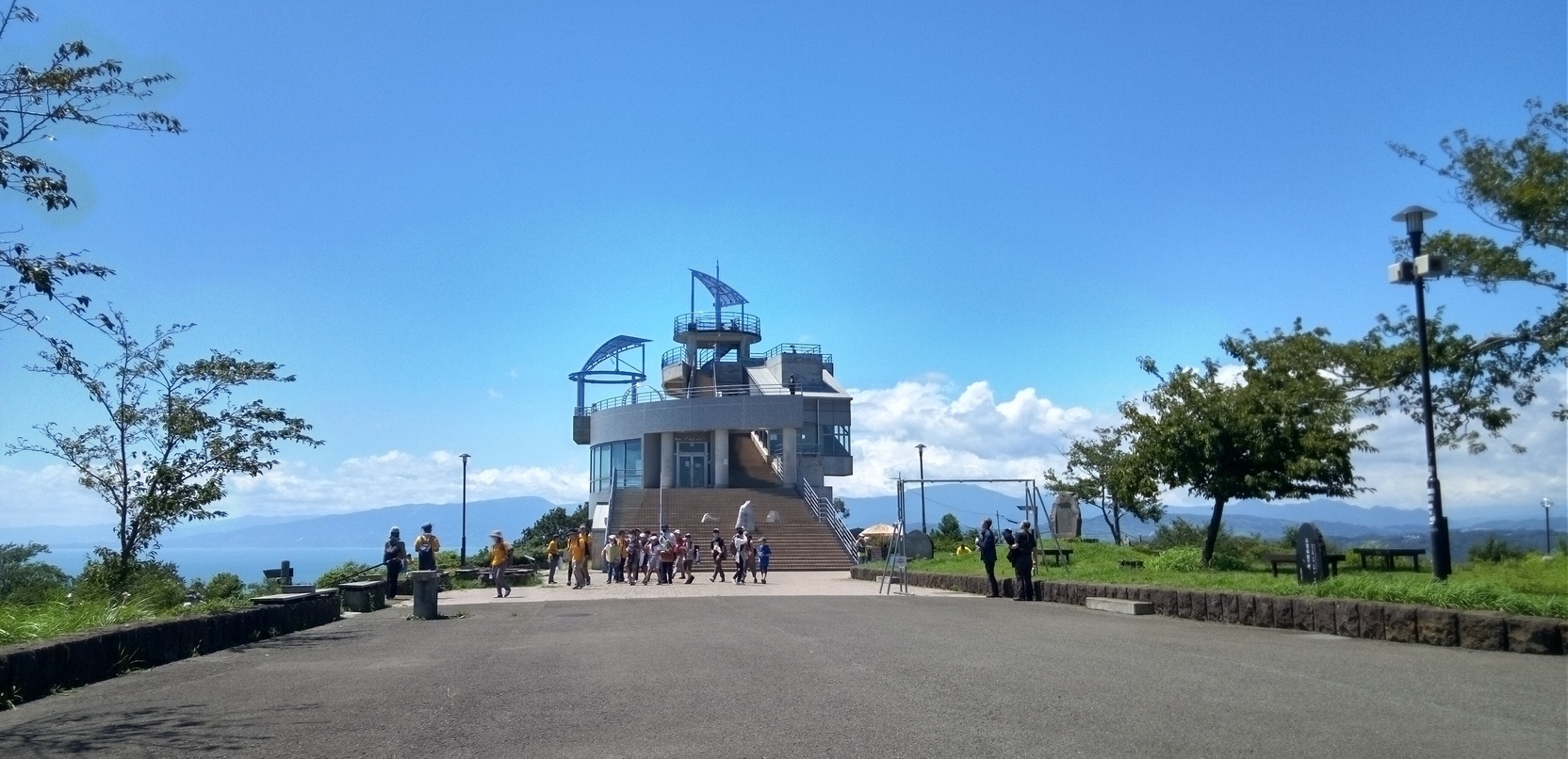 様子を見て来ました。風が吹いているので、気持ち良く夏空を見渡 せました。6月工事中だったのがミストシャワーと分かりました。 7/1から8/31の9時〜16時の間作動しているそうです。早速浴び てみました。縦走して来られたハイカーの方には喜ばれますね。子 ども対象の教室があるようです。多くの指導者が付き添って居られ ました。上の駐車場にはバイク専用がたくさん空いているにも関わ らず、車2台分をバイクが占領しているのが残念でした。新しい1 階売店ホノルル食堂、店内も外も賑わっていました。 (黒木) | ||