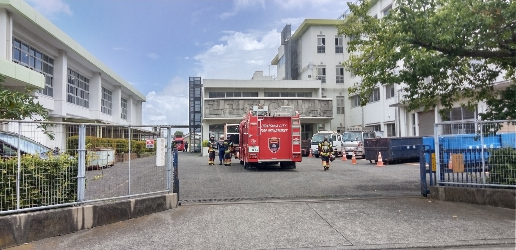15分頃、突然消防 車のサイレンで山下 小学校に消防自動車 が続々と到着。 えっ、火事!!と驚 いてすぐに学校に駆 けつけました。 事情を聞くと誤報と 分かり安堵しました。 何でも、トイレの大 改修中でコンクリー トを粉砕中でそこで 出るコンクリートの 粉を窓から大きなホ ースで外に出してい た土埃を火事の煙と 勘違いしての通報だ った様です。本当に 何事も無く良かった です。15分後には 次つぎと消防車は引 き揚げて行きました 。ご苦労様でした。 誤報で助かりました。 (黒木) |