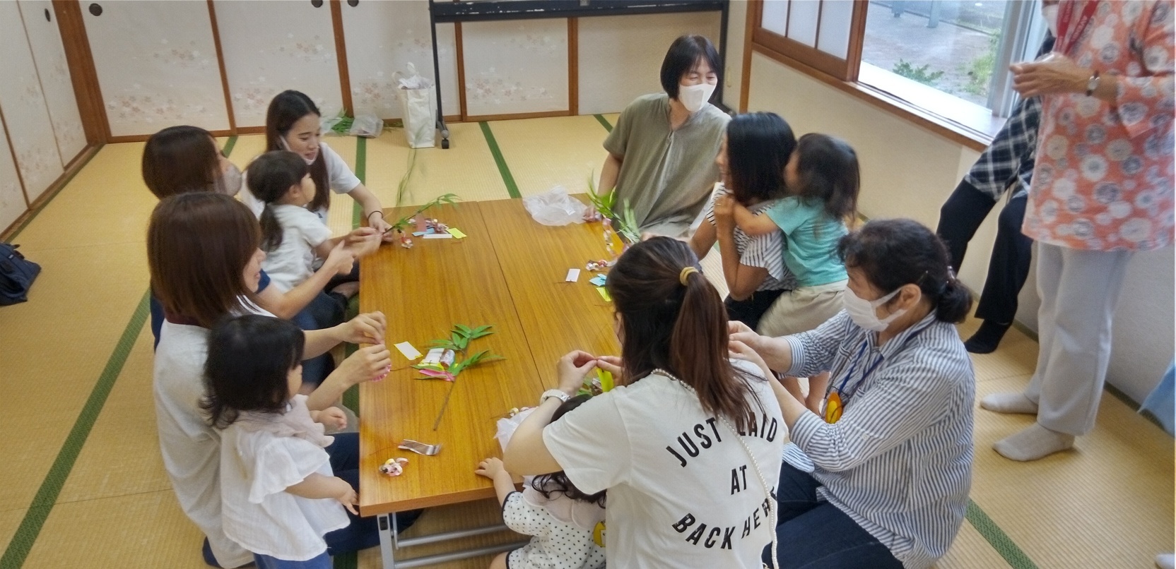 旭南公民館1階和室にて旭南 社協の子育て「おひさま」を 開きました。 梅雨空で今にも降り出しそう お天気でしたが、次つぎとママ に連れられて来てくれました。 さぁて、今日は何してあそぼ うかなぁ。サポートのお姉さ んが小さい絵本から大きな絵 本を読んでくれました。 みんなが大好きなアンパンマン たいそうもしましたよ。最後に もうすぐ七夕だから、ママと一 緒に七夕飾りを作り、おみやげ のおやつを貰い、バーイバイ。 他の写真はPDFを開いて下さい。 (広報黒木) |