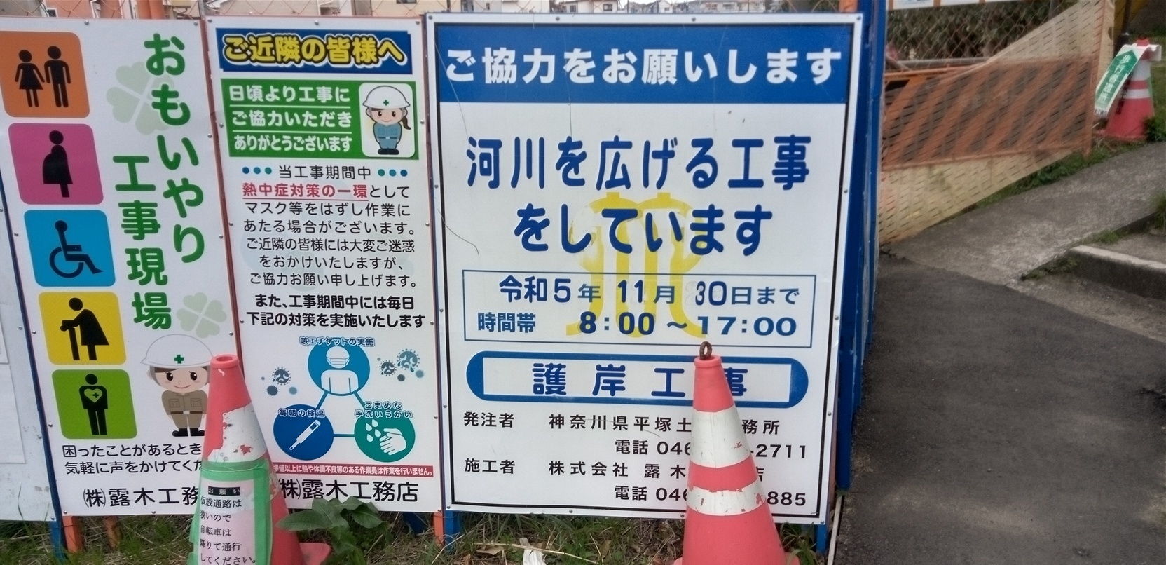 工期変更のお知らせが掲示されています。