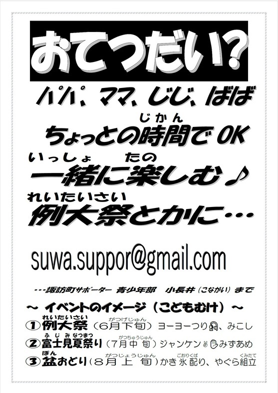 - 2026/03/01 【諏訪町会】諏訪町サポーター募集