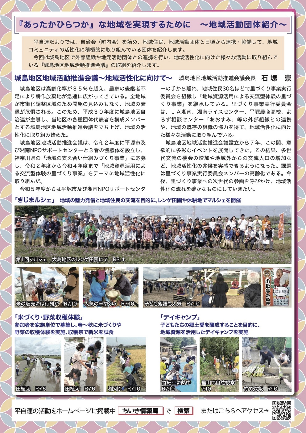 『明るく楽しいふれあいの街花水』を目指して情報を共有し更なる発展をさせていきます。