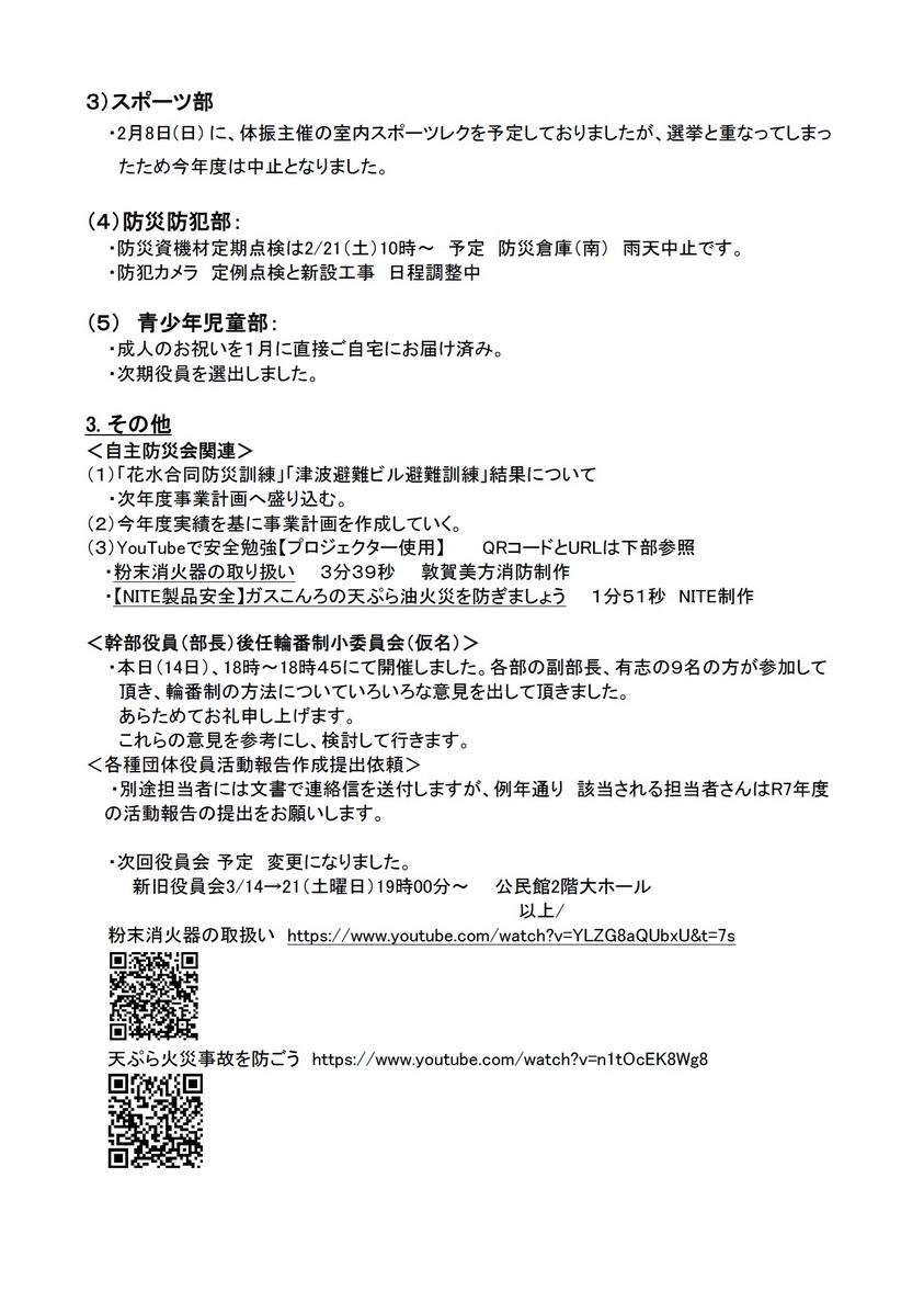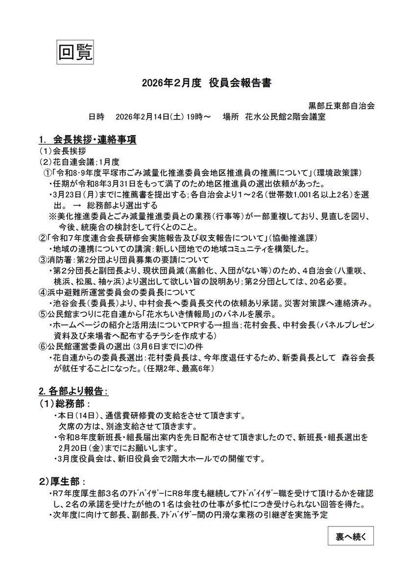 - 2026/03/07 2026年2月度 役員会報告【黒部丘東部自治会】