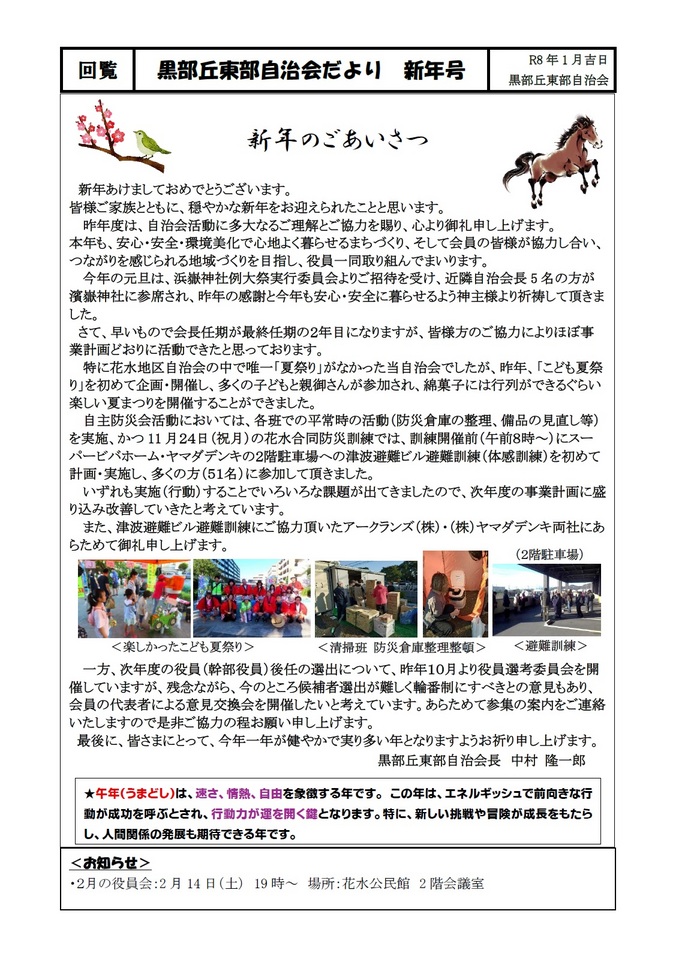 - 2026/01/12 黒部丘東部自治会だより 新年号【黒部丘東部自治会】