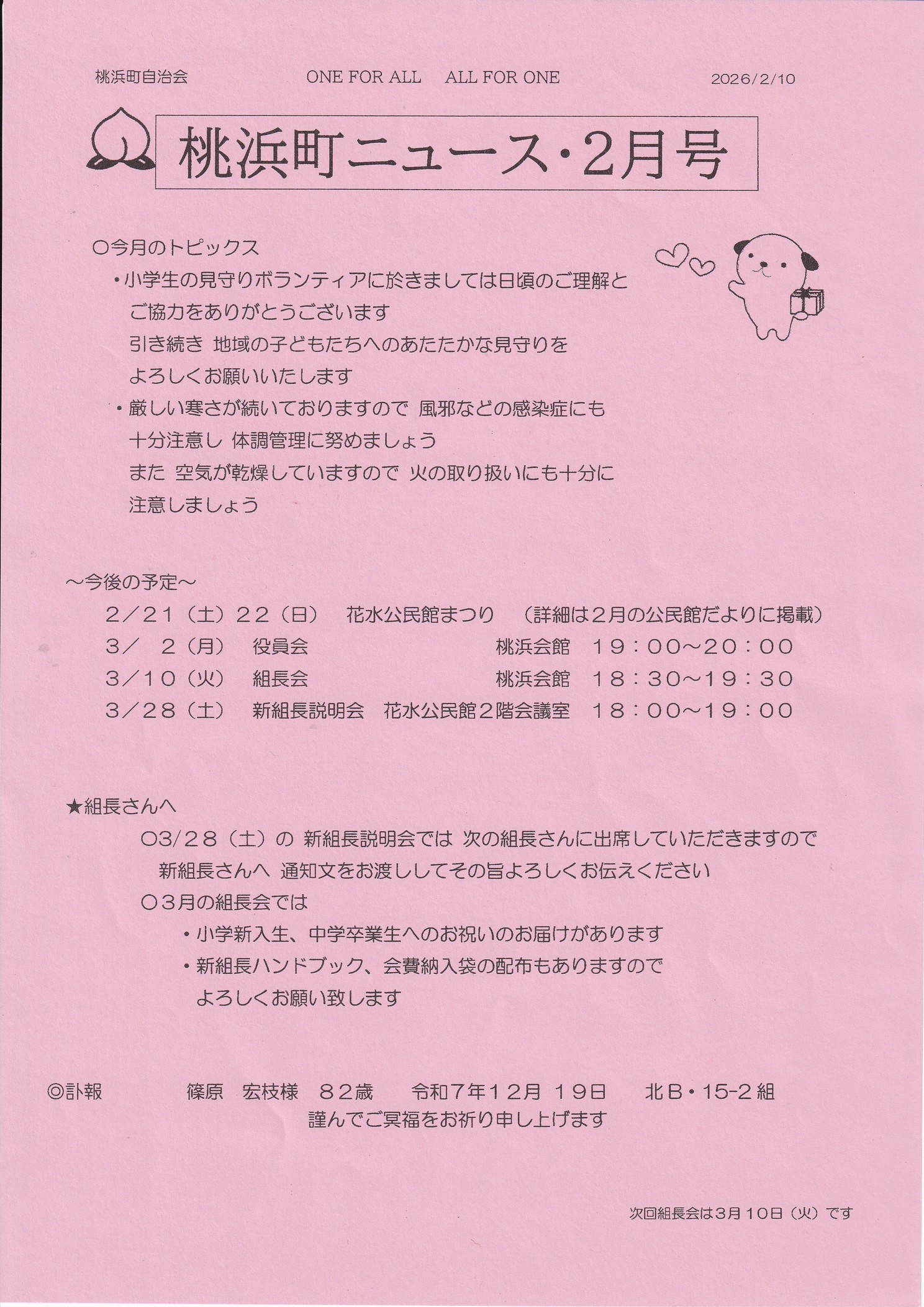 - 2026/02/25 桃浜町ニュース 2026/02/10