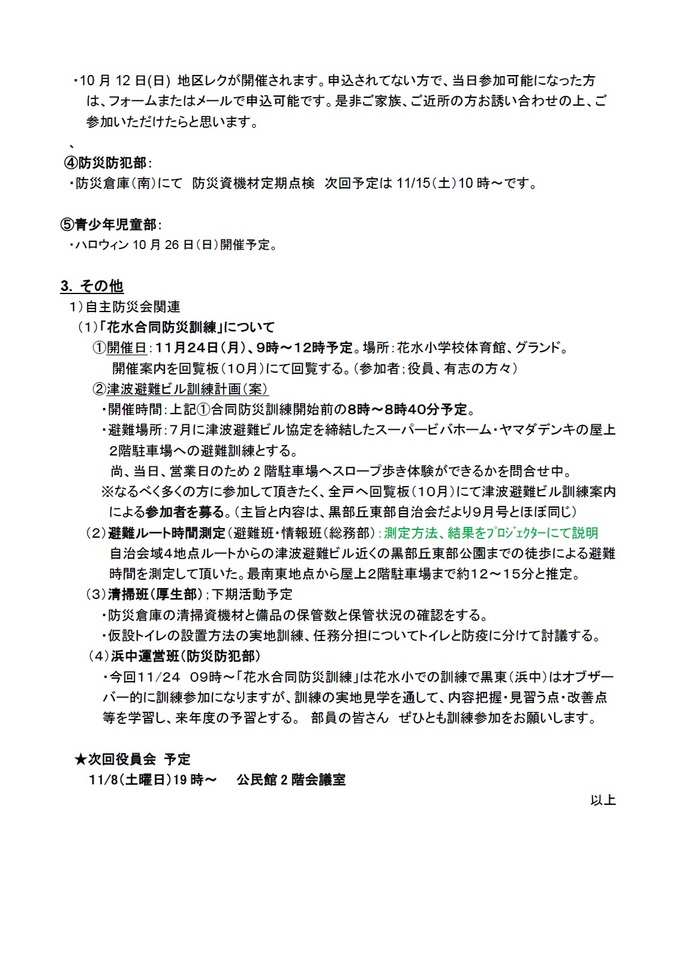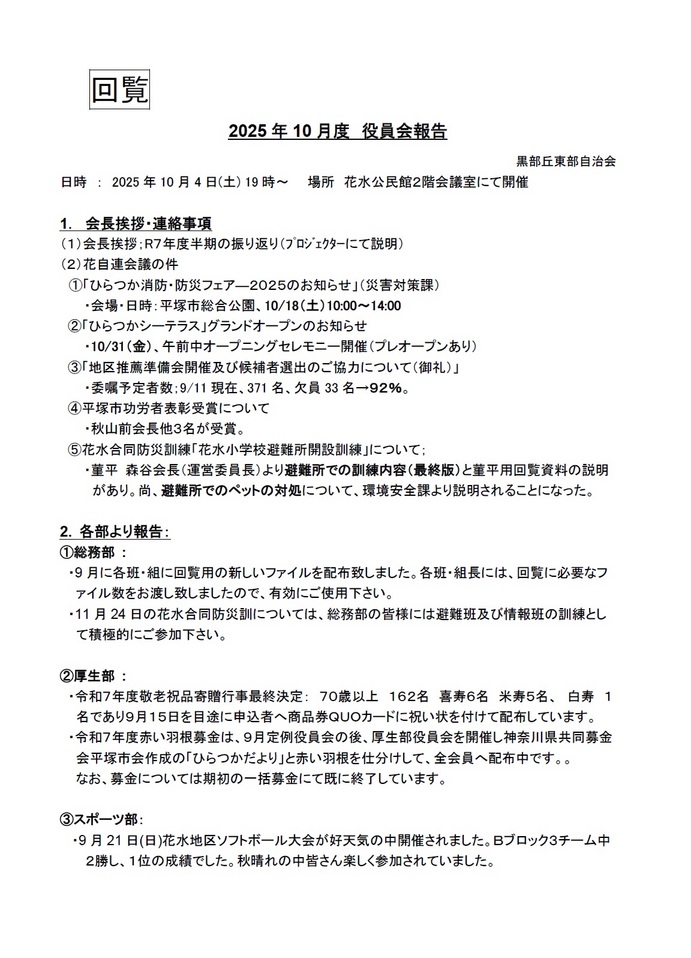 - 2025/12/05 2025年11月度 役員会報告【黒部丘東部自治会】