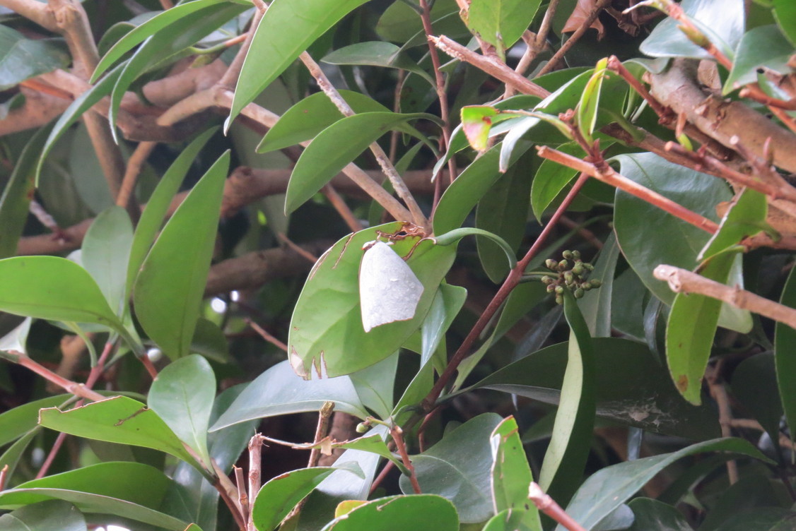 ≪金目の自然 蝶 ≫ 今季1頭だけの越冬ウラギンシジミ お正月(三が日)、七草粥、鏡開き、道祖神まつり(どんと焼き、団子焼き)、地域の新年の集い、小正月と云ったお正月の行事も終わり、早や半月が過ぎました。 金目親水公園及び近くの民家の生垣で毎年、成蝶で冬を越すウラギンシジミ、クロコノマチョウ、ムラサキシジミ、ムラサキツバメなどが見られます。しかし、今季は冬眠・休眠する時期から今日までずっと一カ所で越冬している蝶はウラギンシジミの1頭(上3枚の写真 撮影日が異なる)だけしか確認されていません。何故、今年はこんなに少ないのか? その一因として、 @晩秋から季節外れの暖かい日、寒い日といった寒・暖の日が多く、冬眠・休眠し始めると暖かい日が来て目覚めて飛び回るといった行動を繰り返し、結局、冬眠・休眠している場所が確認できなくなった。 A園内の木々が大きく成長し過ぎて伐採されて越冬場所がなくなった(園内で越冬・休眠する成蝶は主に常緑広葉樹である椿、アラカシ、マテバシイ等の葉の裏・表で冬眠・休眠する)。 B既に民家の生垣で冬眠していた蝶は、お正月を迎えるために生垣が剪定されて、どこかへ逃げ去った。 などが重なっことにより極端に少なくなった考えられます。(Y.Y.) |
