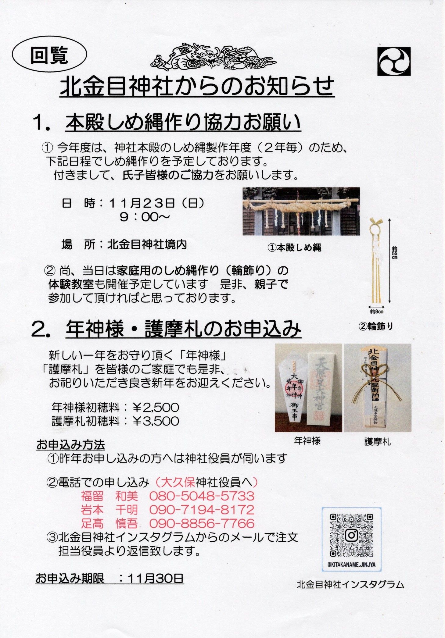 - 2025/11/07 北金目神社からのお知らせ 〜北久保・中久保・大久保地区〜