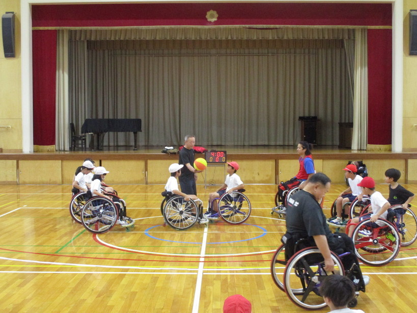 台風10号に出鼻をくじかれた夏休み明けとなりましたが、今日は再び子どもたちの元気な声が金目小学校に戻ってきました。 長期休業明けは、登校に不安があったり、リズムを戻せなかったりする子どもたちが少なからずいると思います。そこで今日は、金目小全職員で「全力の笑顔で子どもたちを迎えよう」そして、子どもたちに「やっぱり学校へ来てよかった」と感じて帰ってもらおうという意識で臨みました。 そのような中、4年生は「総合的な学習の時間」で扱っている福祉学習の一環で、パラリンピックの種目にもなっている「車いすバスケットボール」を楽しみました。 「湘南スポーツクラブ.車椅子バスケットボール体験講座隊」の方々のご指導で、専用車いすの操作から、実際のバスケットボールのゲーム体験までさせていただき、子どもたちは笑顔いっぱいでした。 |